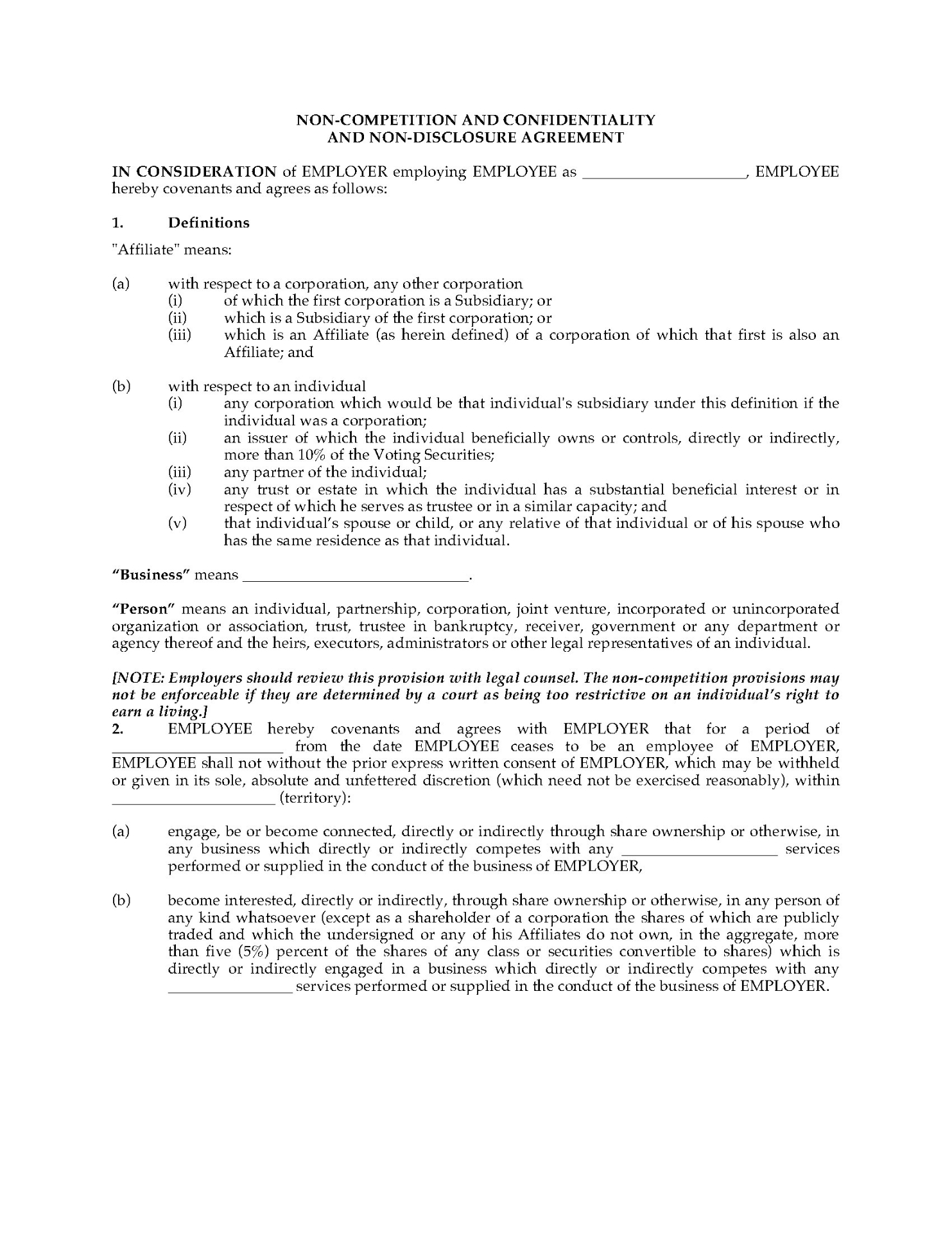 - Confidentiality. The contractor agrees not to disclose or use any confidential information of the employer.