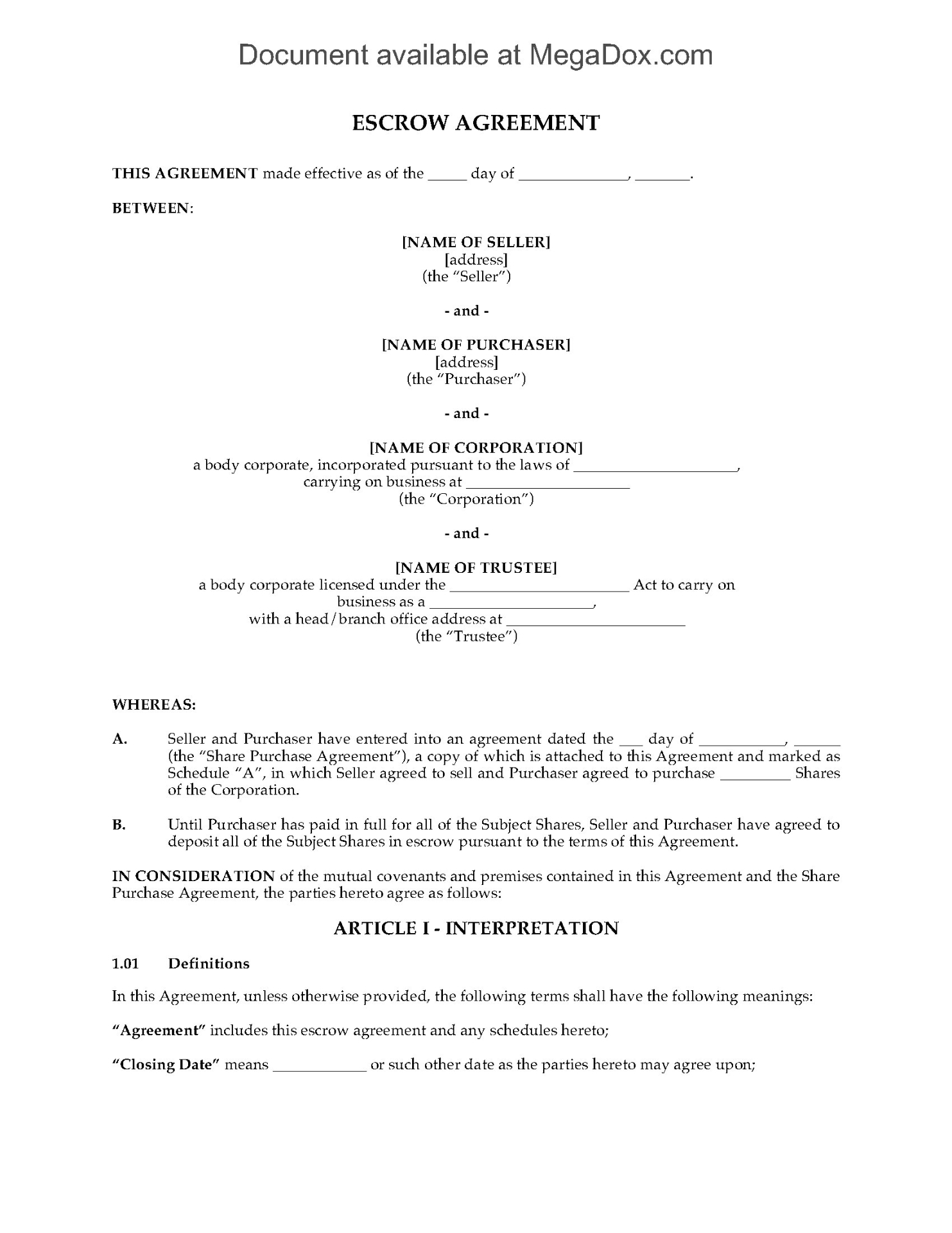 - This downloadable Share Purchase Agreement is an easy exit strategy for an equal partner to transfer its interest while allowing the business to continue operations.