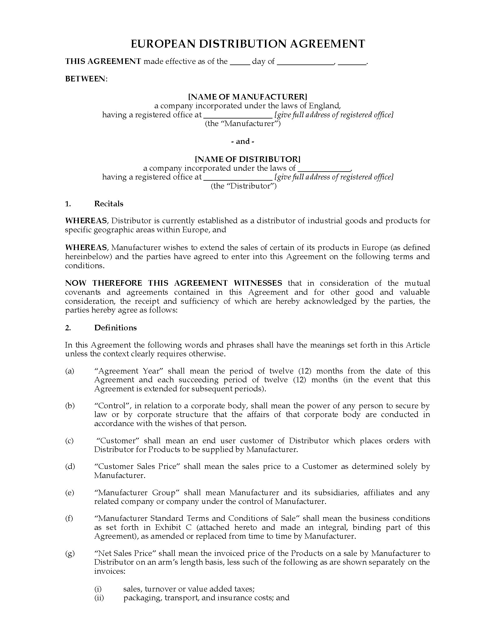 Contract with a distributor to sell your products across Canada with this Exclusive Distributor Agreement for Canadian manufacturers.