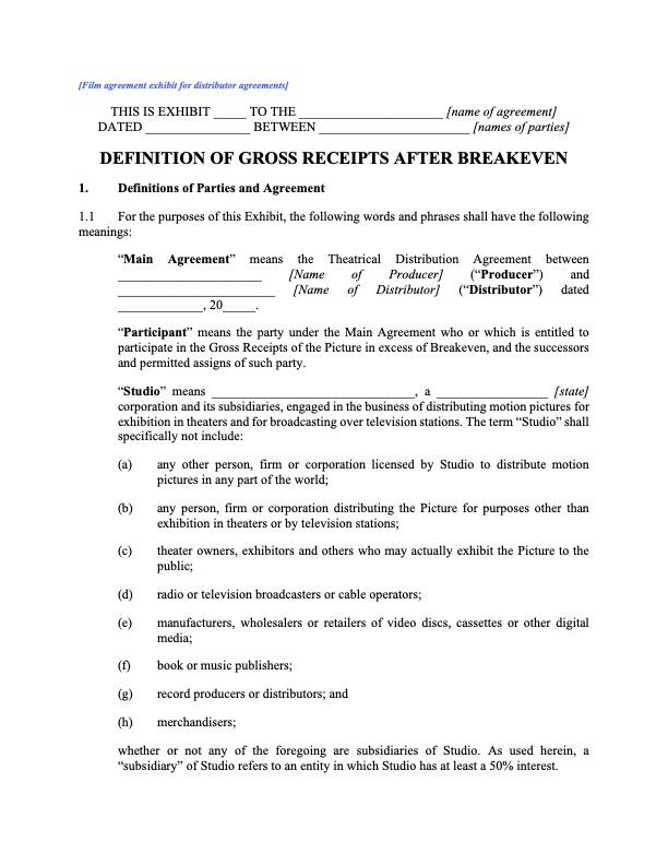 Download the Definition of Gross and Net Receipts template for your film contract library.