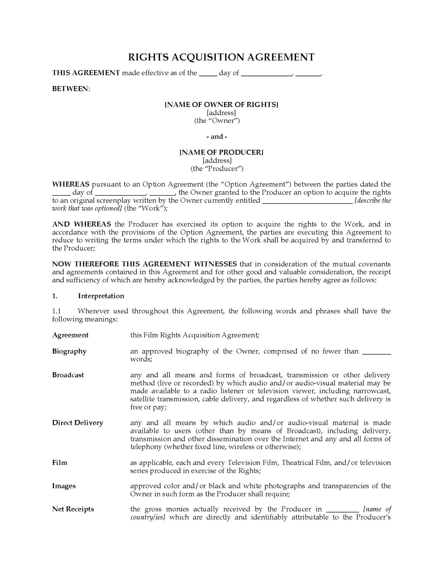 Don't lose an opportunity to get exclusive rights to a fascinating life story. Step 1: Buy the Option Agreement template. Step 2: Get it signed!