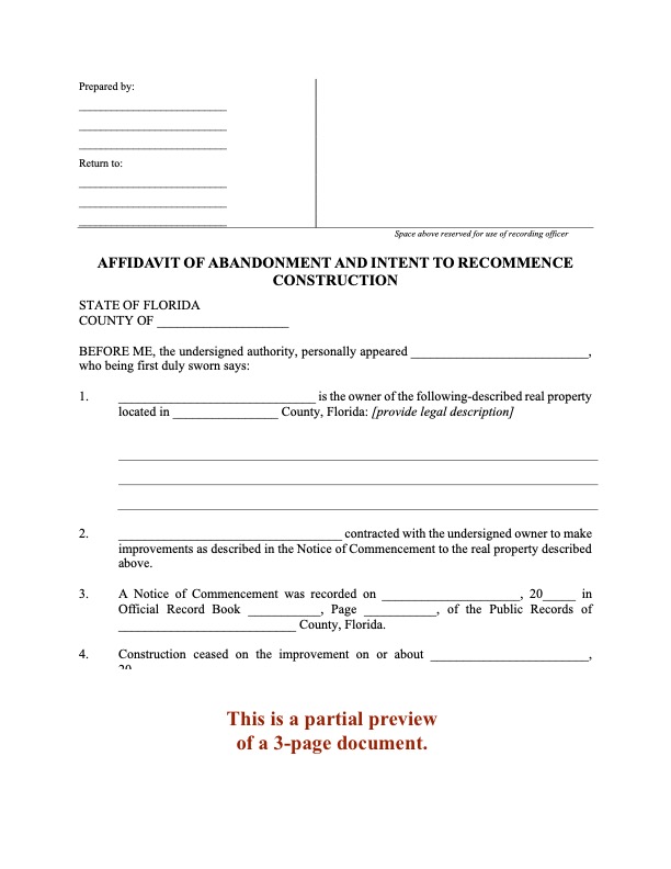 If construction on your property is going to restart after a work stoppage, Florida law requires you to serve a Notice of Recommencement.