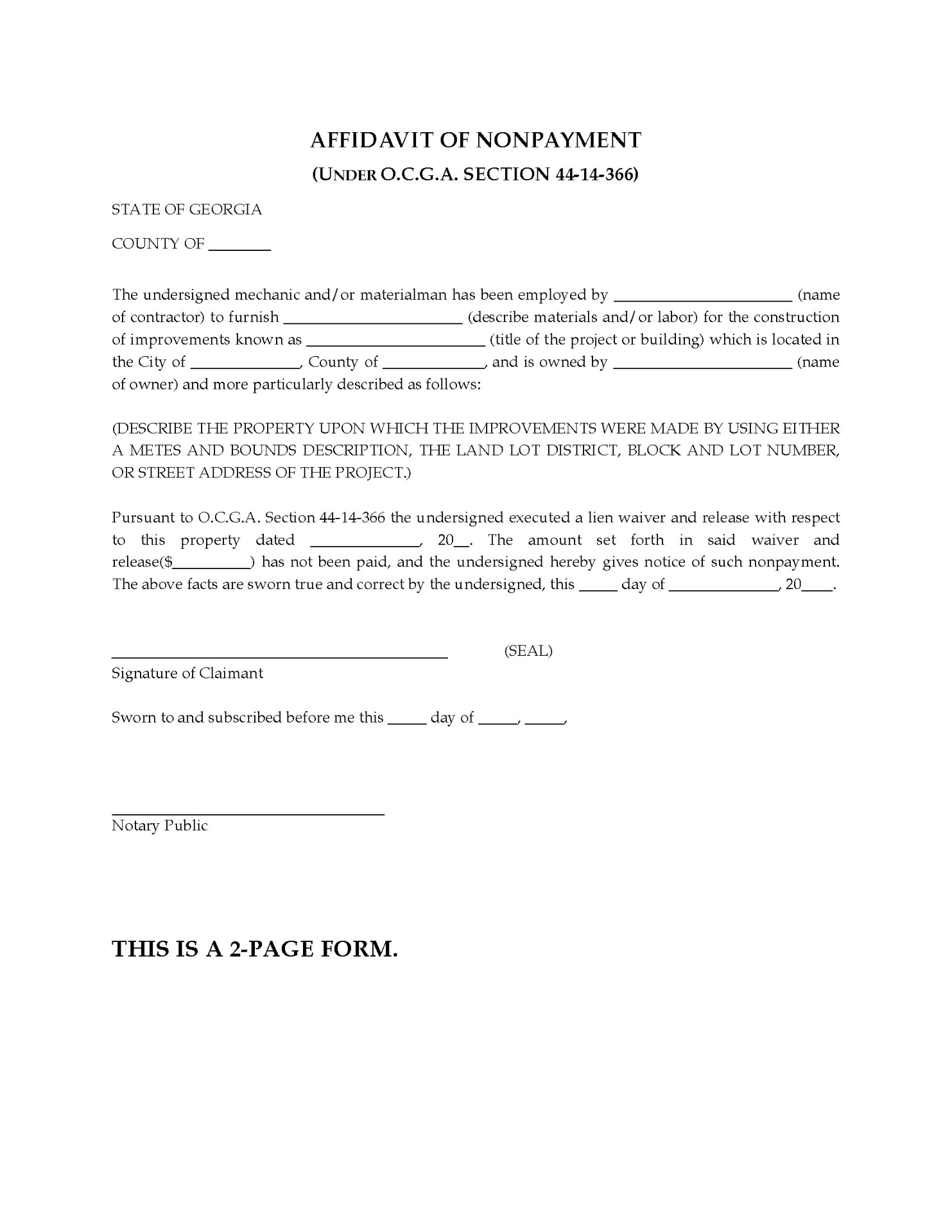 - Optional Notary Acknowledgement (if Affidavit of Nonpayment is filed)