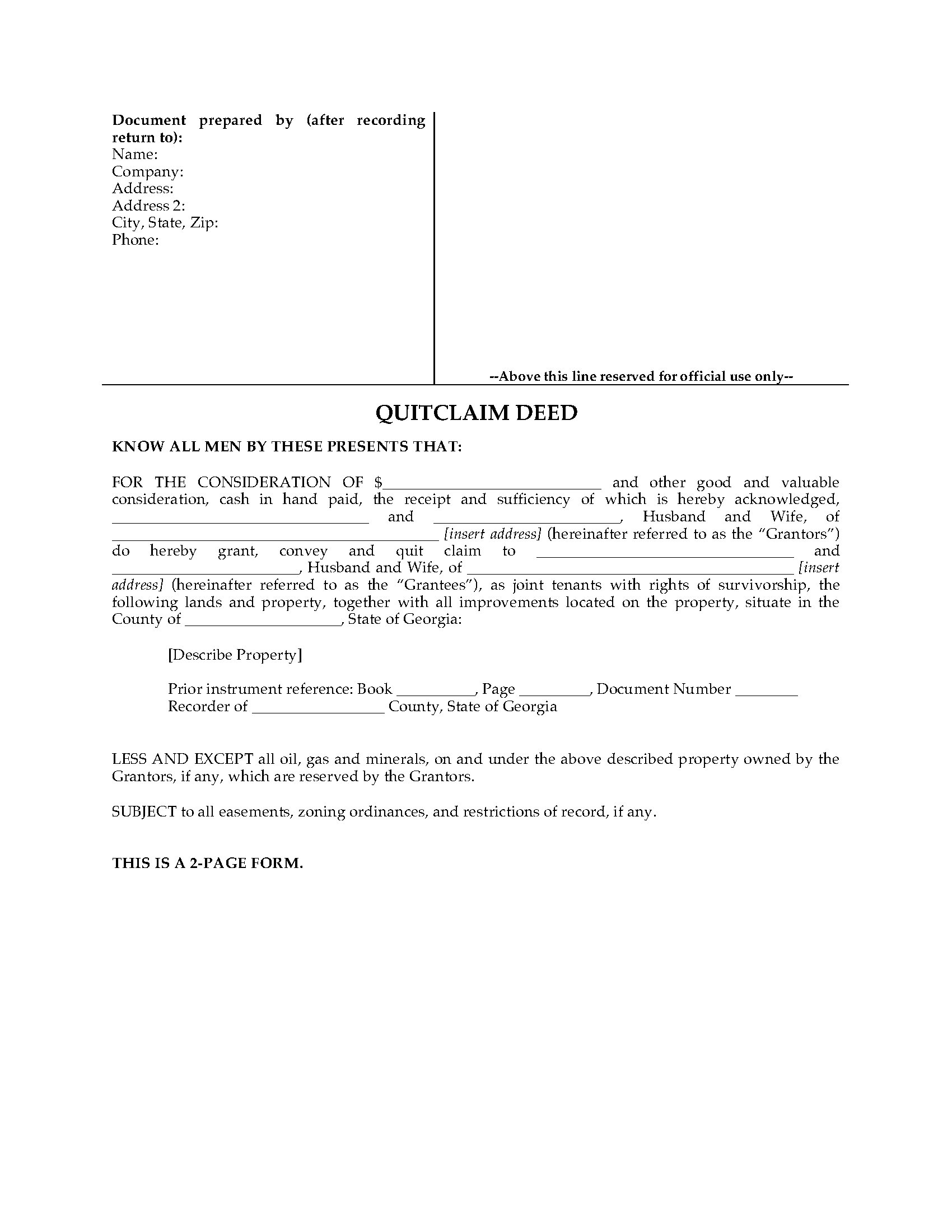 Georgia Quitclaim Deed for Joint Ownership