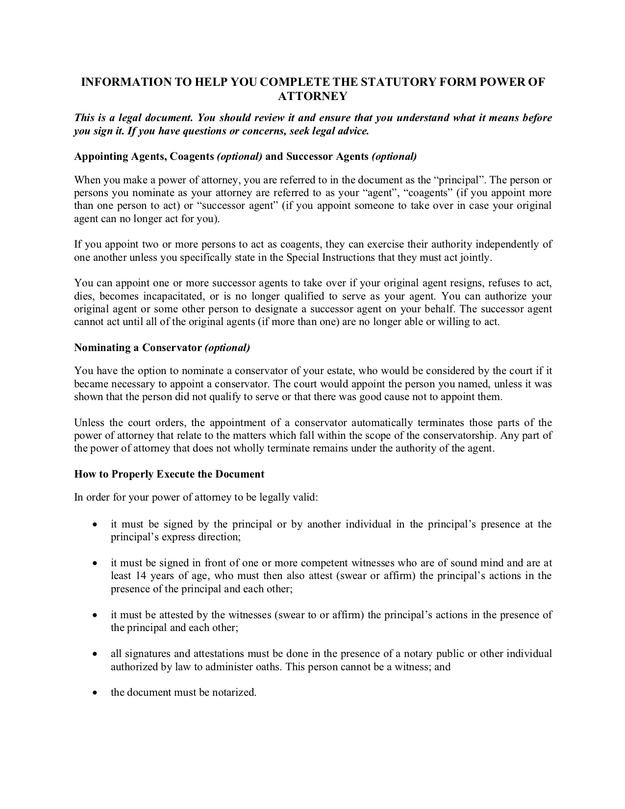 - Nomination of a Guardian: You have the option to name a person to act as your guardian should a court determine that a guardian is needed.
