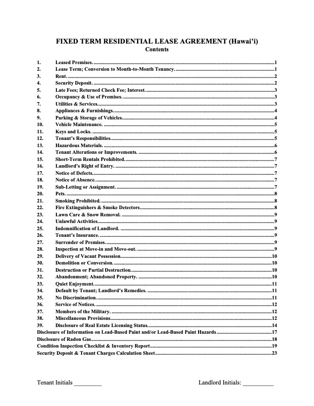 Hawaii Lease Co-Signer Agreement
