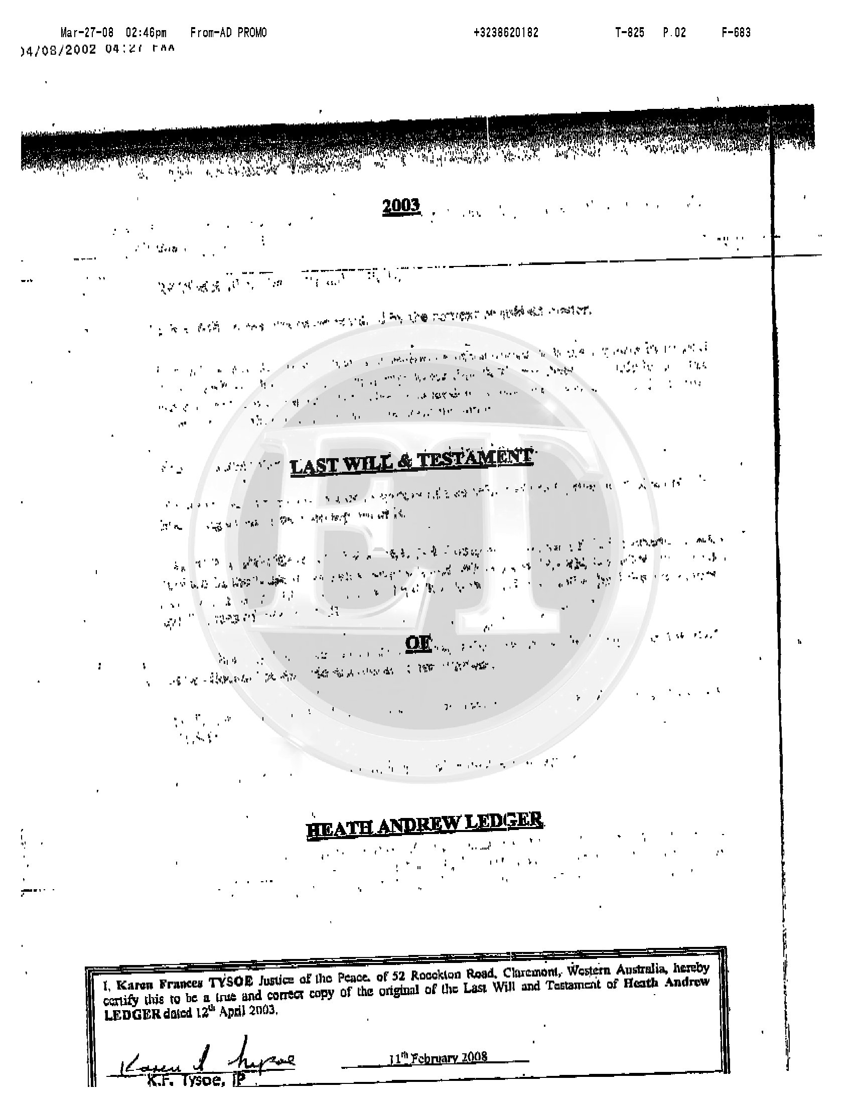 Download a free copy of the Last Will and Testament of Heath Ledger (1979-2008).