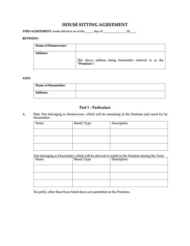 - providing for the house sitter's needs (childcare, storage space, etc.);