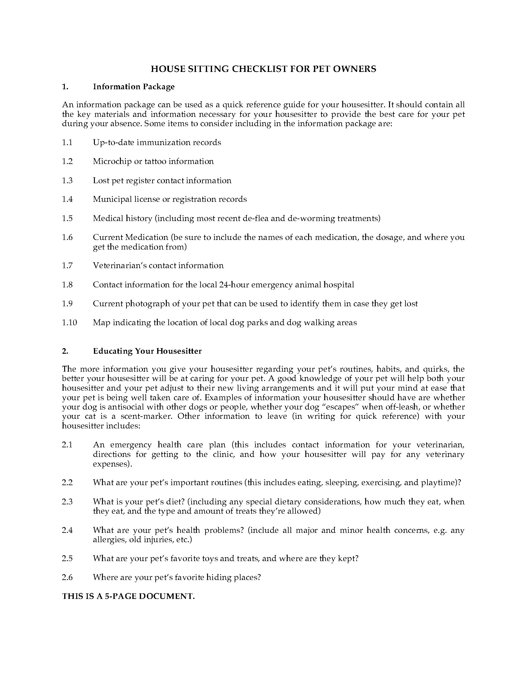 - Pet Information Form: Collects important details about each pet that will be cared for by the service provider.