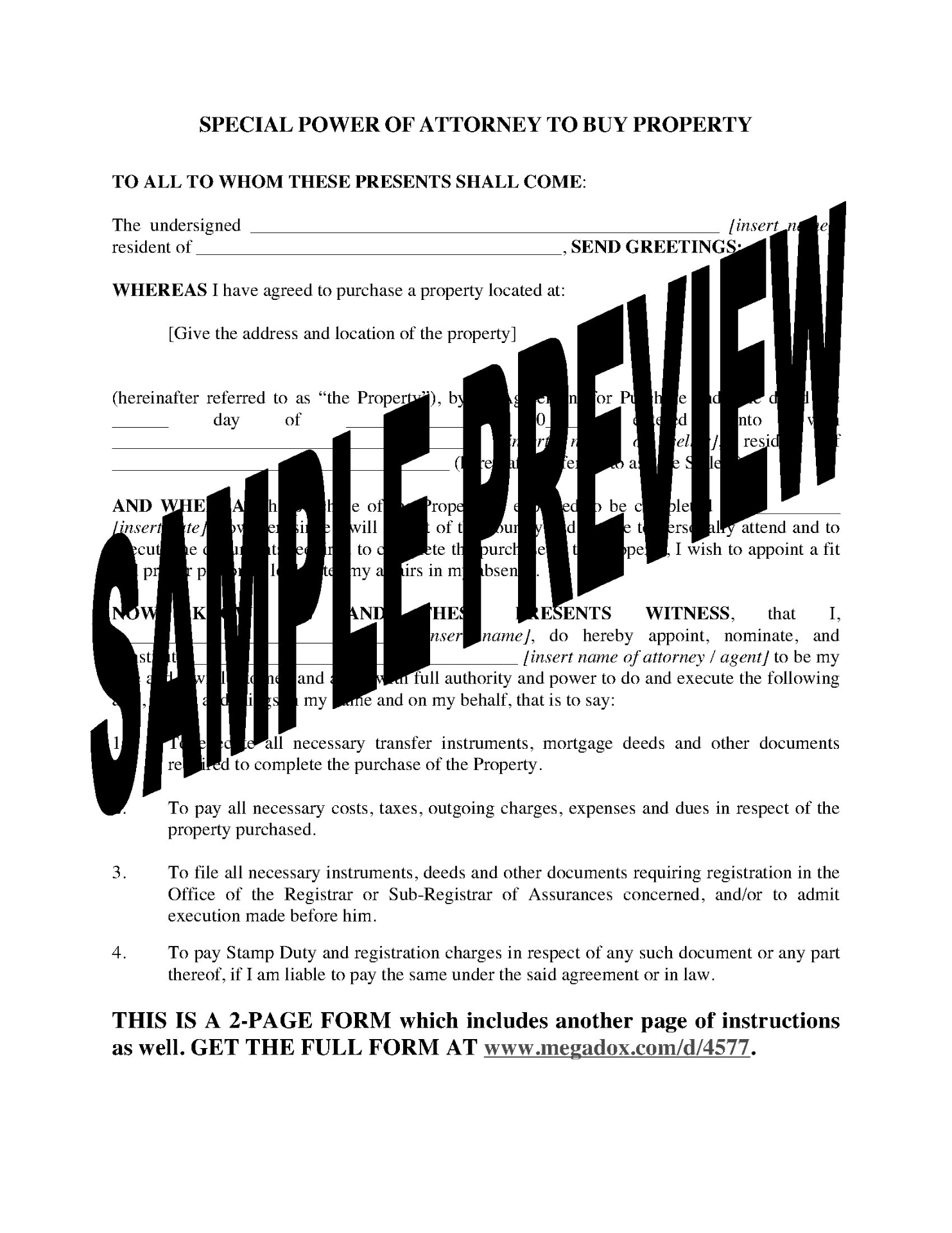 This Indian General Power of Attorney form is provided in MS Word format and contains instructions for proper signature and notarization to ensure that the form is valid in India, whether it is signed in India or in another country.