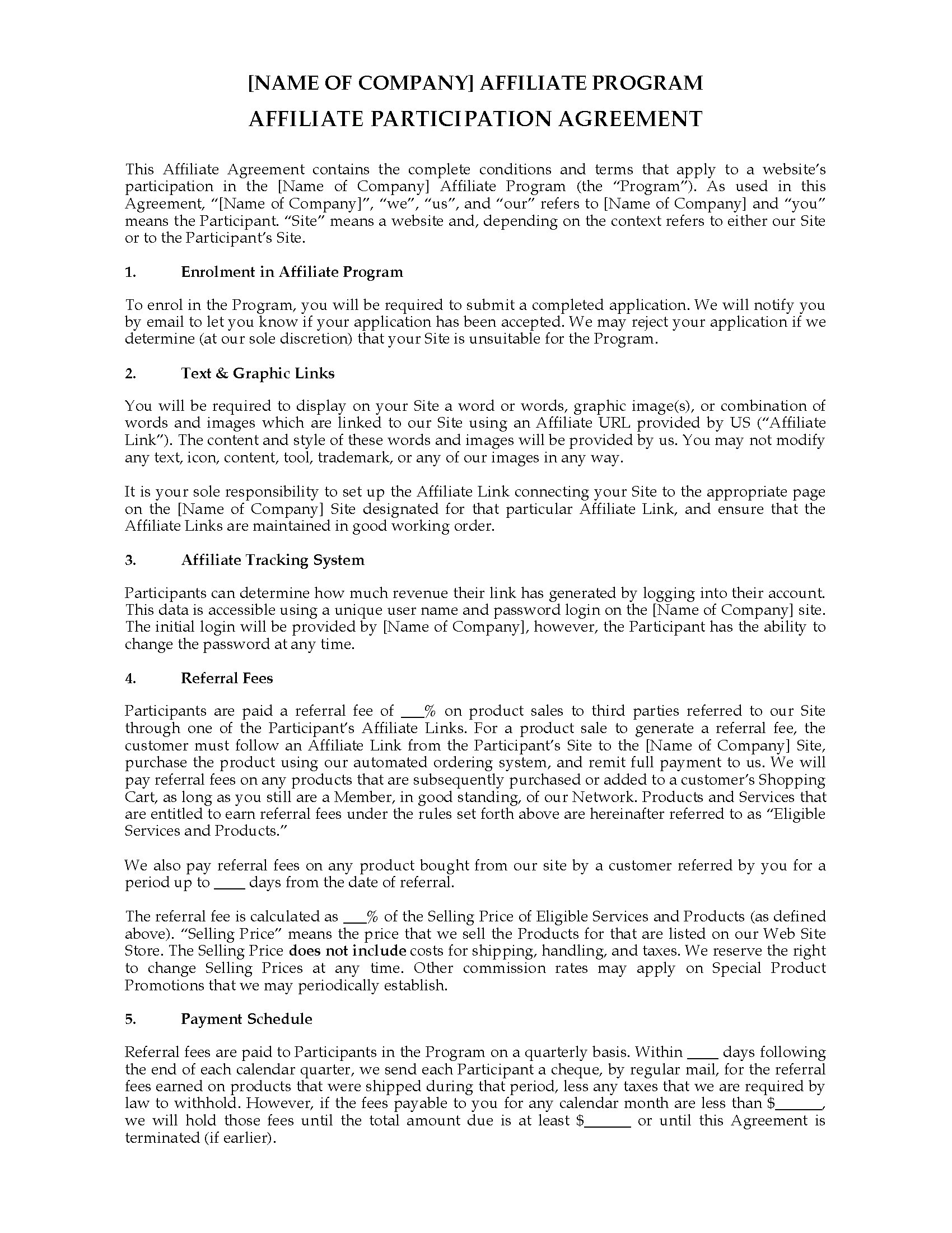 - The template can be converted to html and posted online to be read and agreed to by affiliates when they sign up for the program.