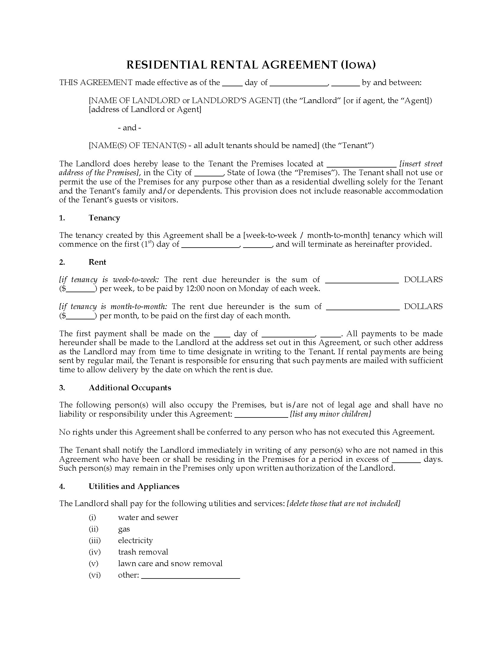 Iowa Rental Agreement for Residential Premises