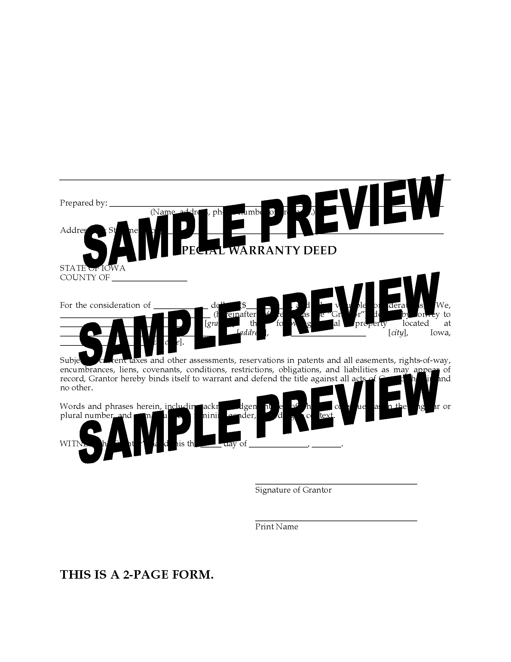This Iowa Special Warranty Deed form is available as a downloadable MS Word document, and is easy to fill in with the details of your transaction.Document Type: