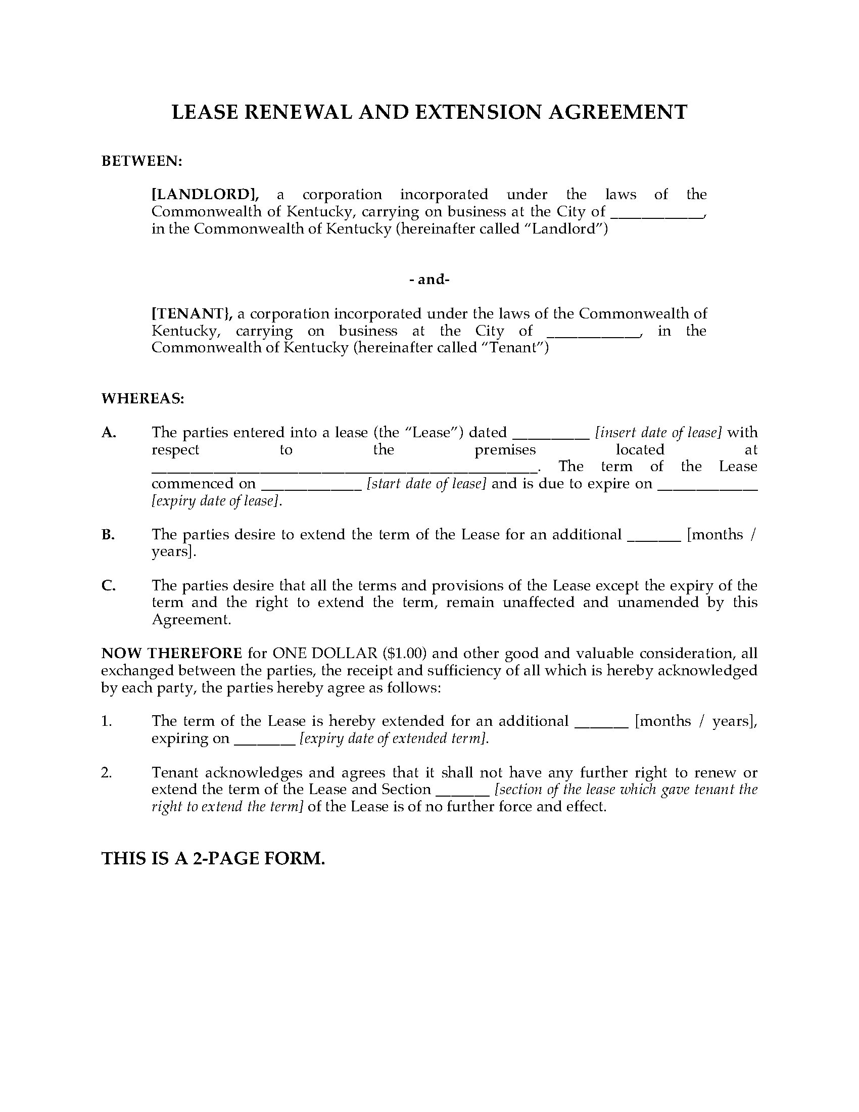 - This agreement is for commercial tenants only. You need a different form for residential rental properties.
