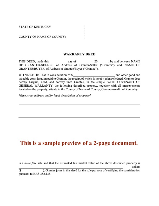 Transfer ownership of a Kentucky real estate property from two sellers to two buyers with this Kentucky Warranty Deed for Joint Ownership.