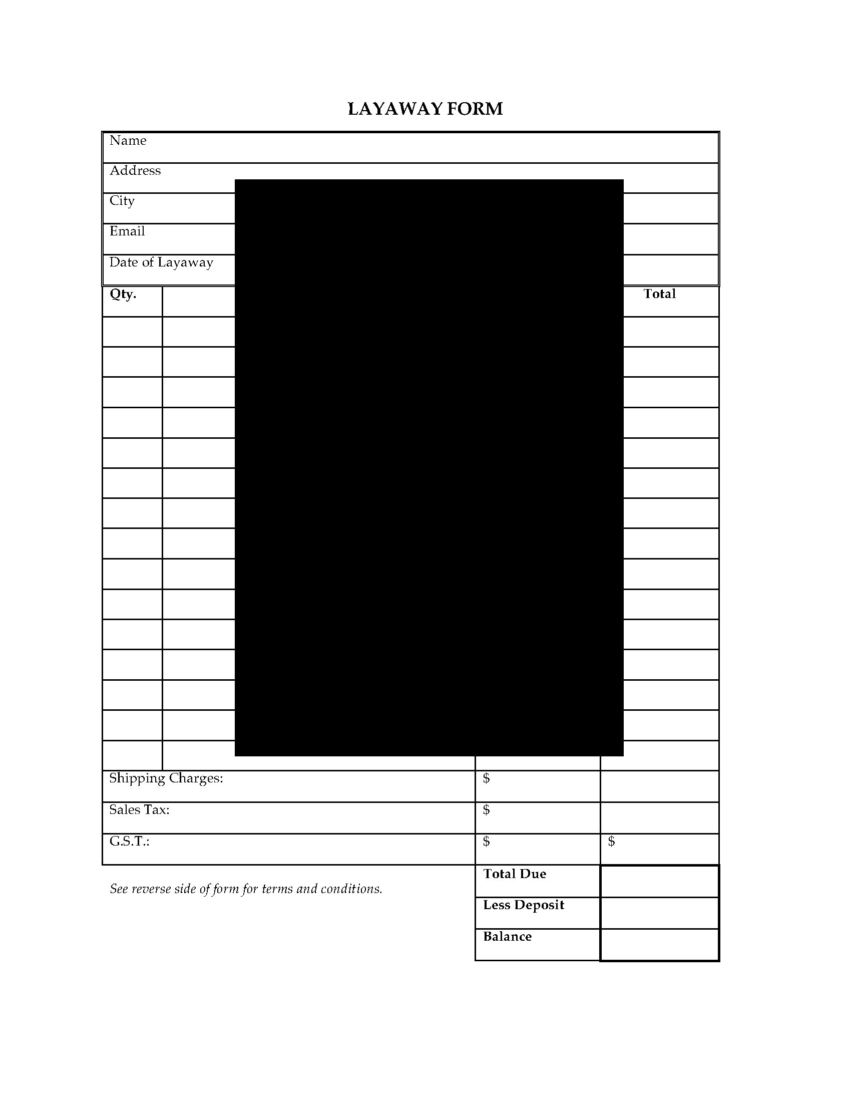 Lay-By Agreement | Australia and New Zealand