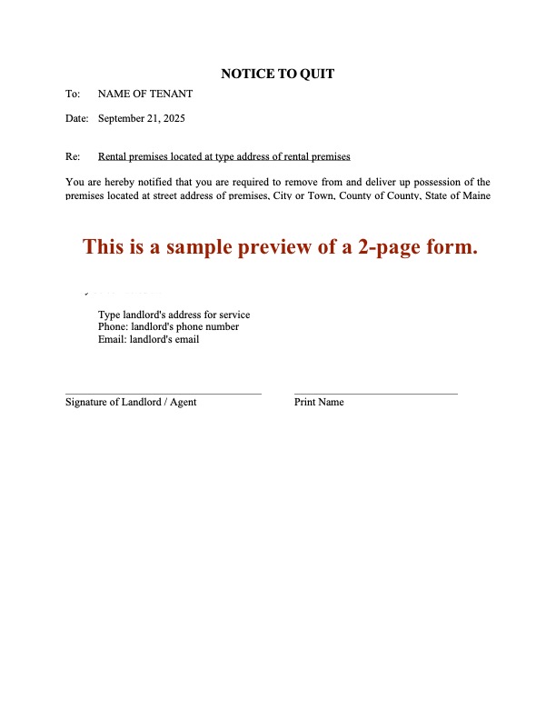 Maine landlords, do you need to evict a tenant who does not have a written lease? Before you can evict, you must serve the tenant with this 7 Day Notice to Quit.