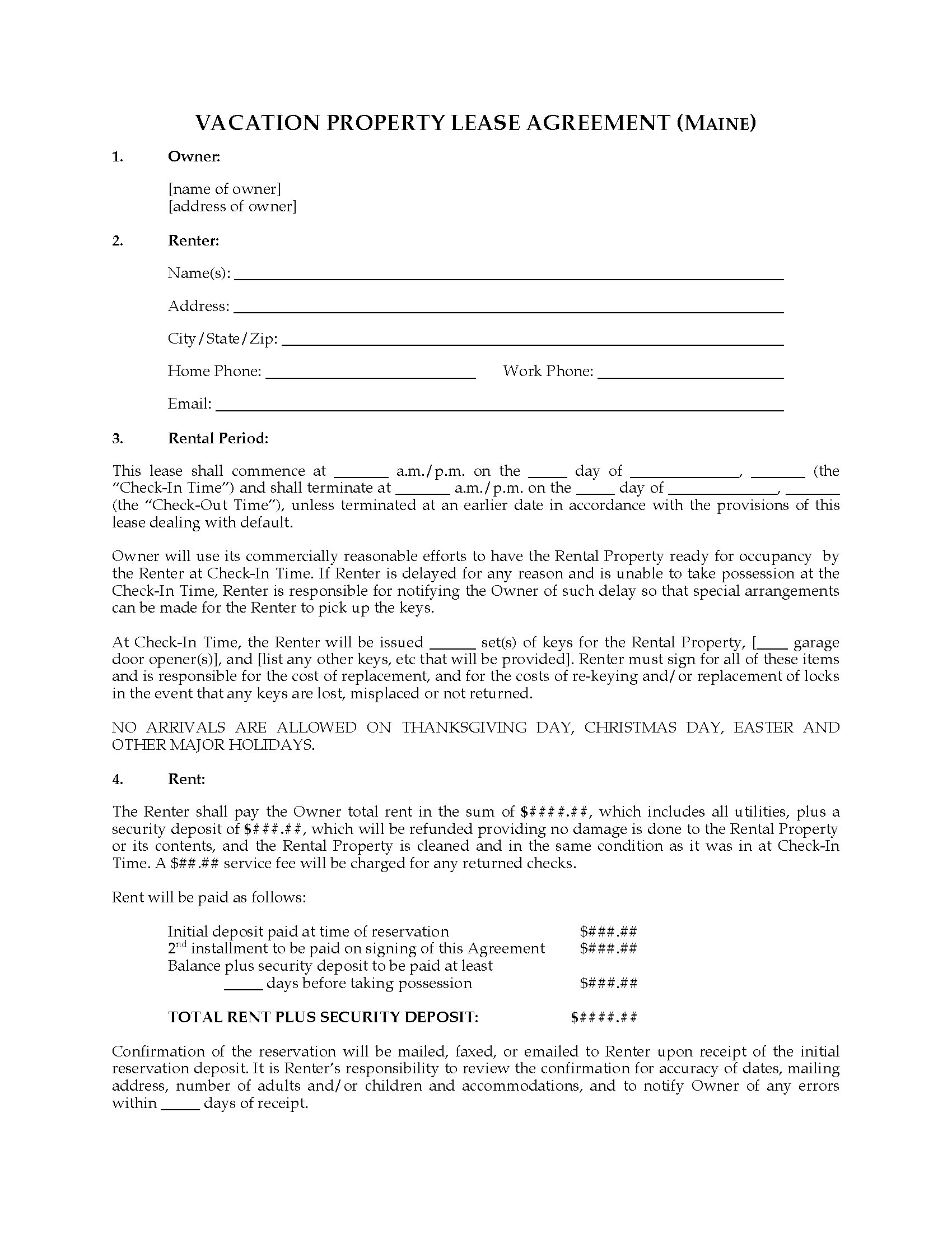 Maine Vacation Property Rental Application