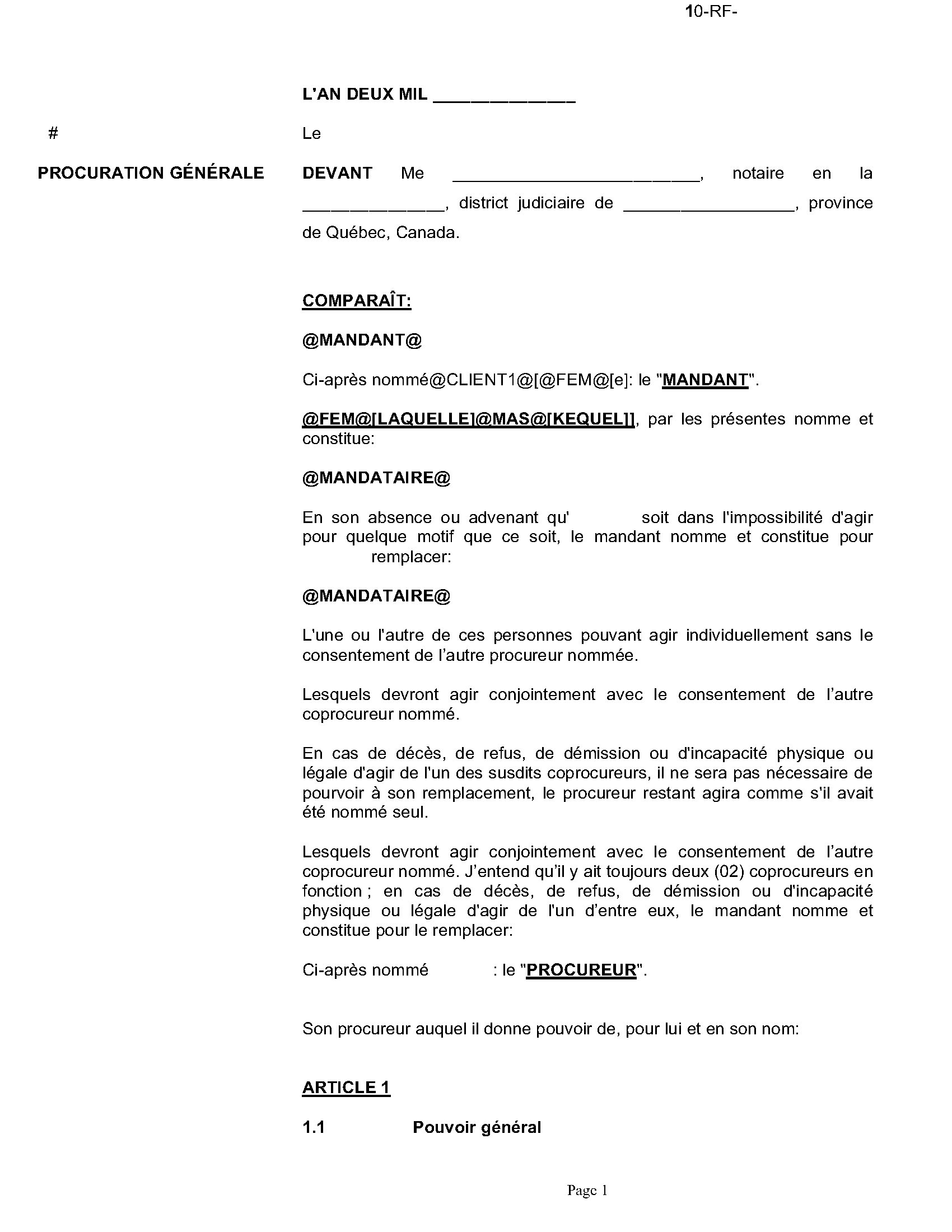 Appoint an agent to manage your personal and financial affairs on your behalf with this Protection Mandate form for the Province of Québec.