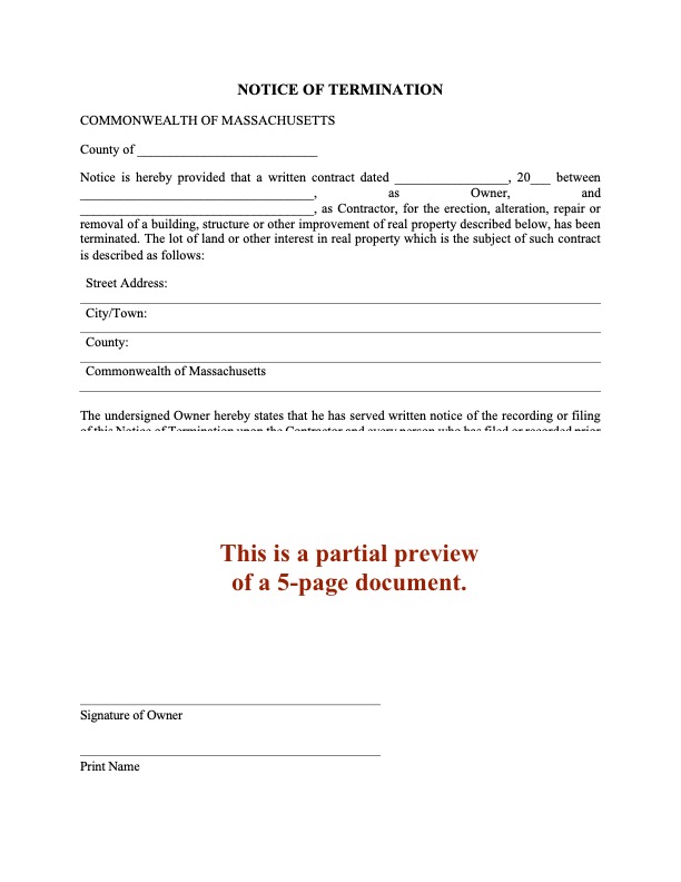 Prepare a Massachusetts Notice of Substantial Completion for work completed on a construction project with this easy-to-use template.
