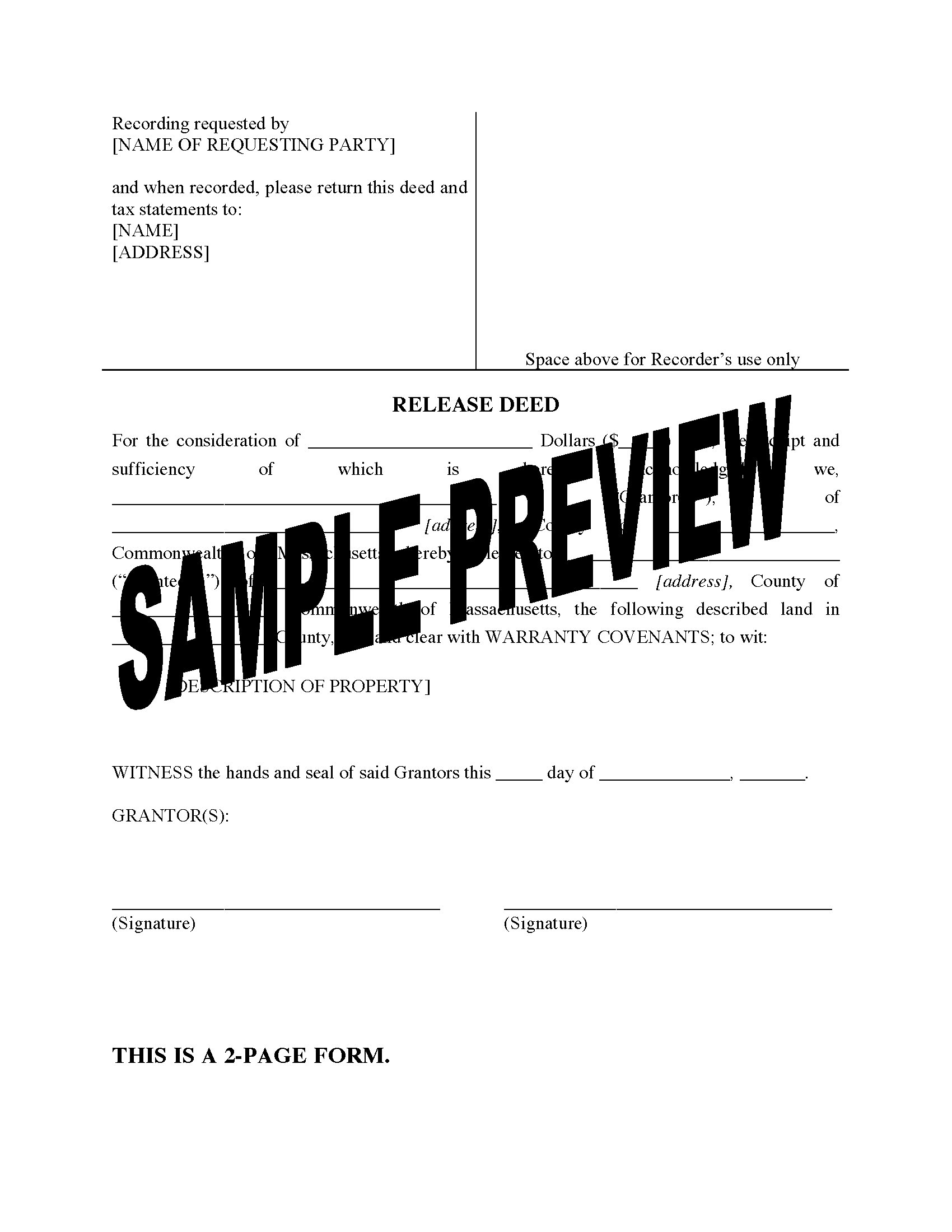Massachusetts Release Deed