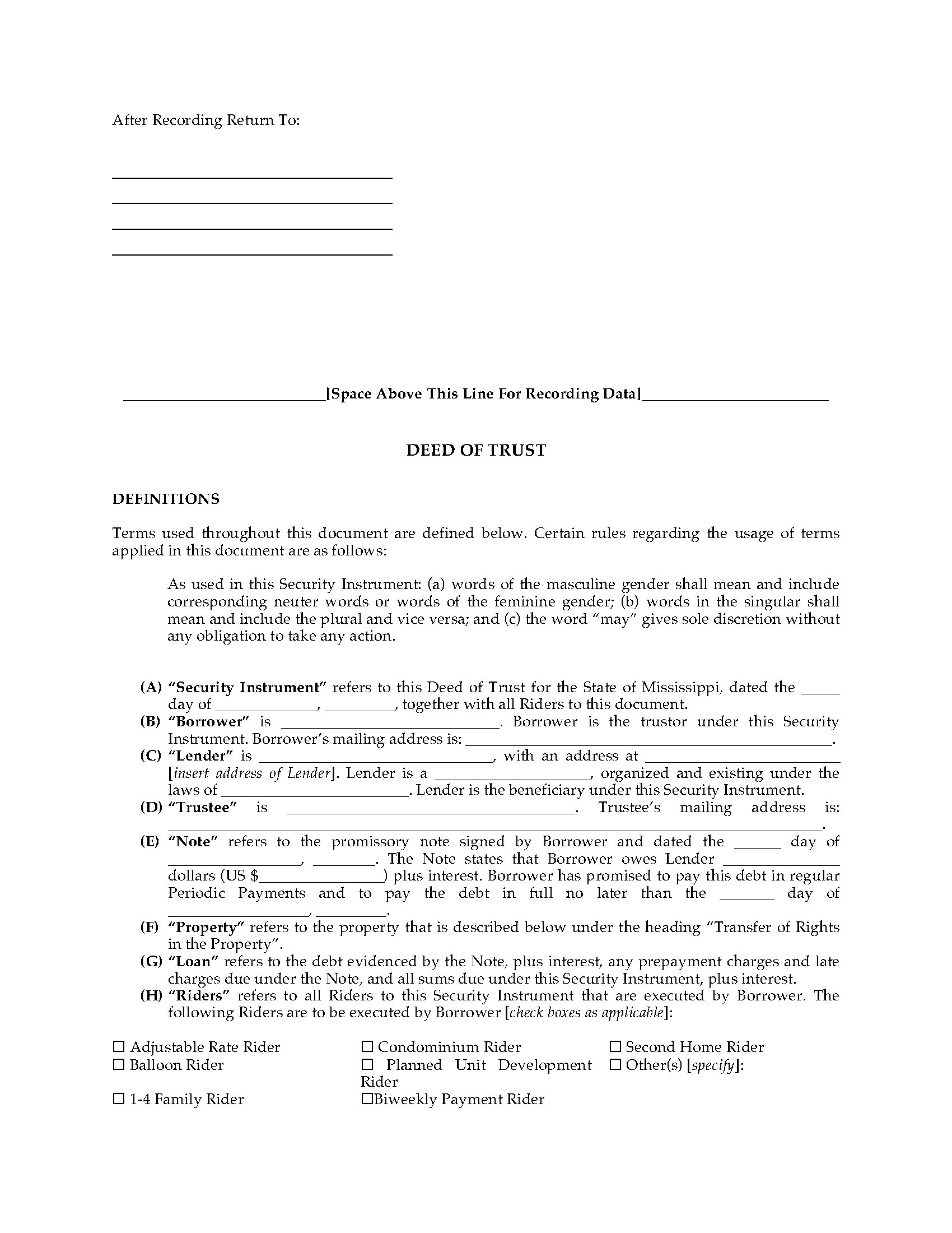 Mississippi Special Warranty Deed