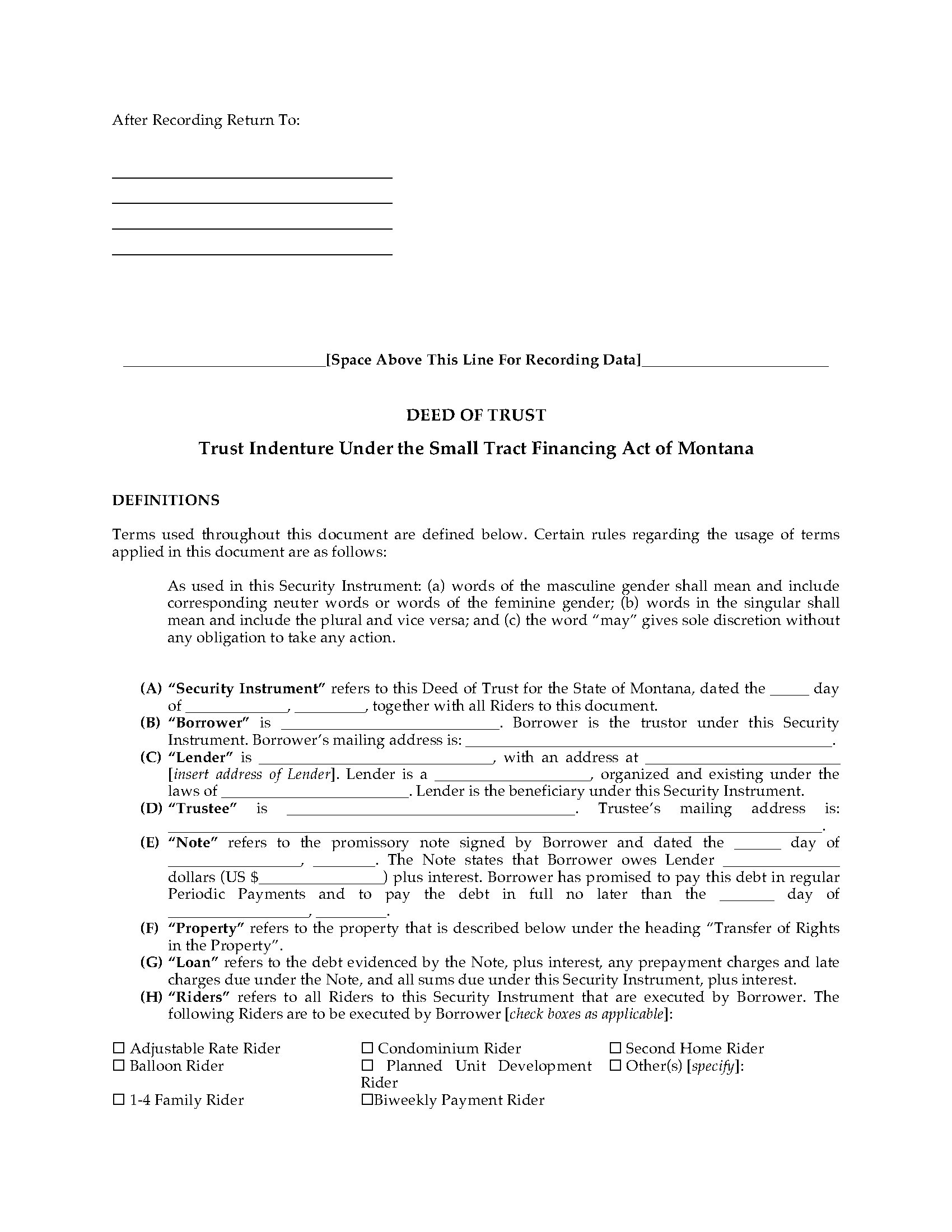Montana Warranty Deed Form