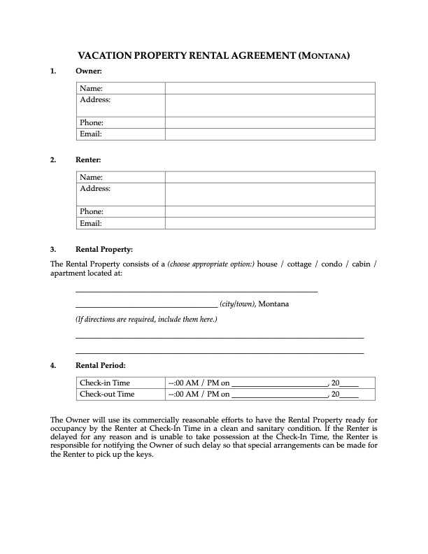 Montana Vacation Property Rental Application