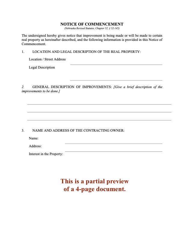 - For use only for construction projects in the State of Nebraska.