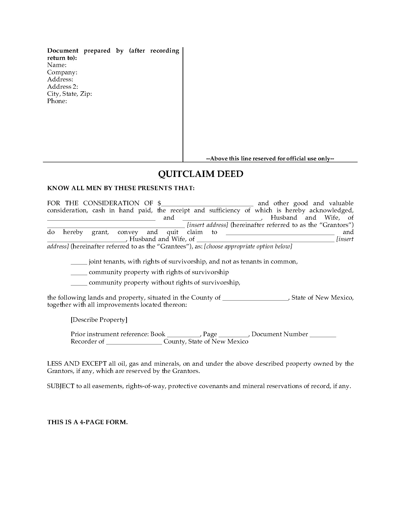 New Mexico Quitclaim Deed for Joint Ownership form is provided in MS Word format and is easy to download, fill in and print.