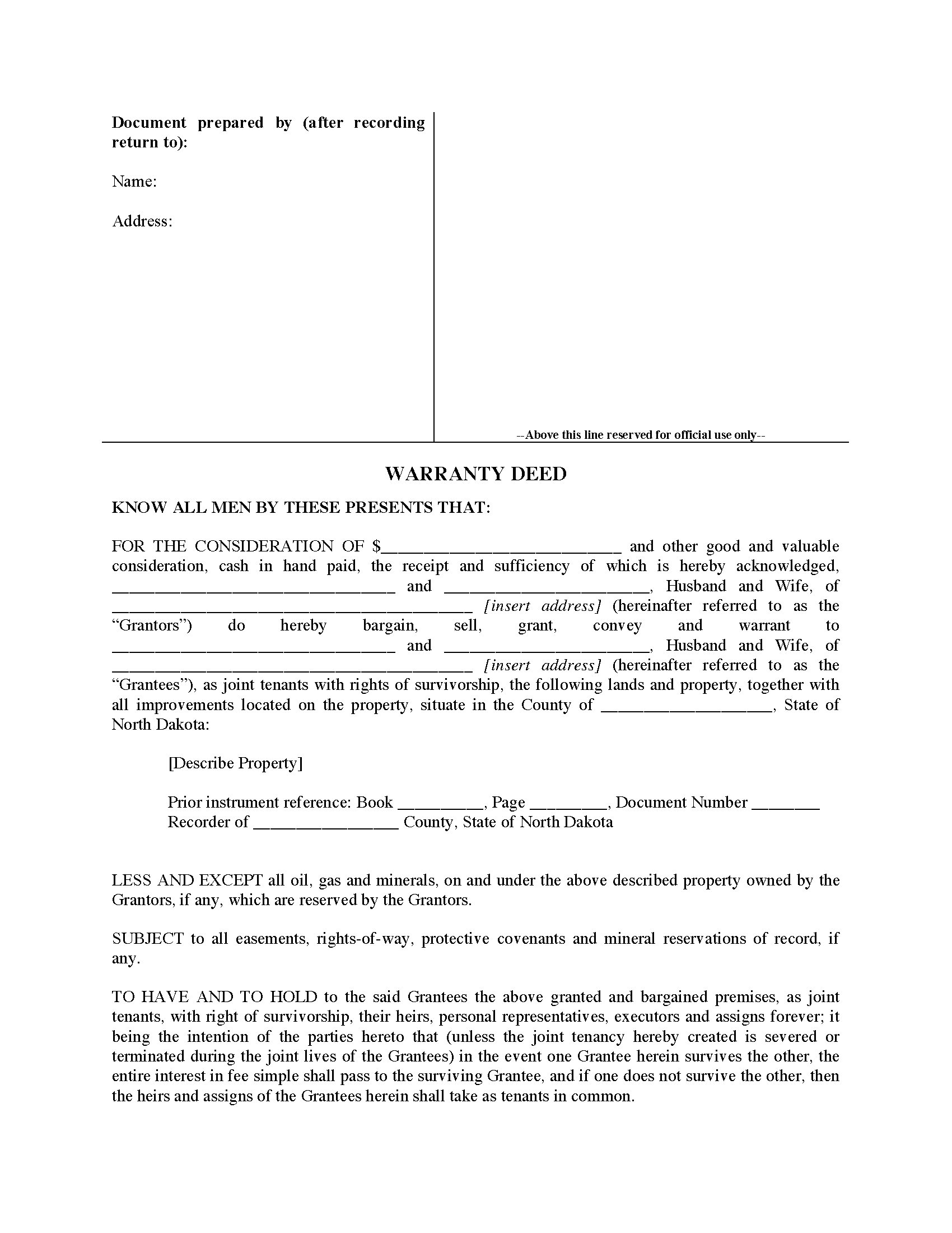 North Dakota Warranty Deed for Joint Ownership