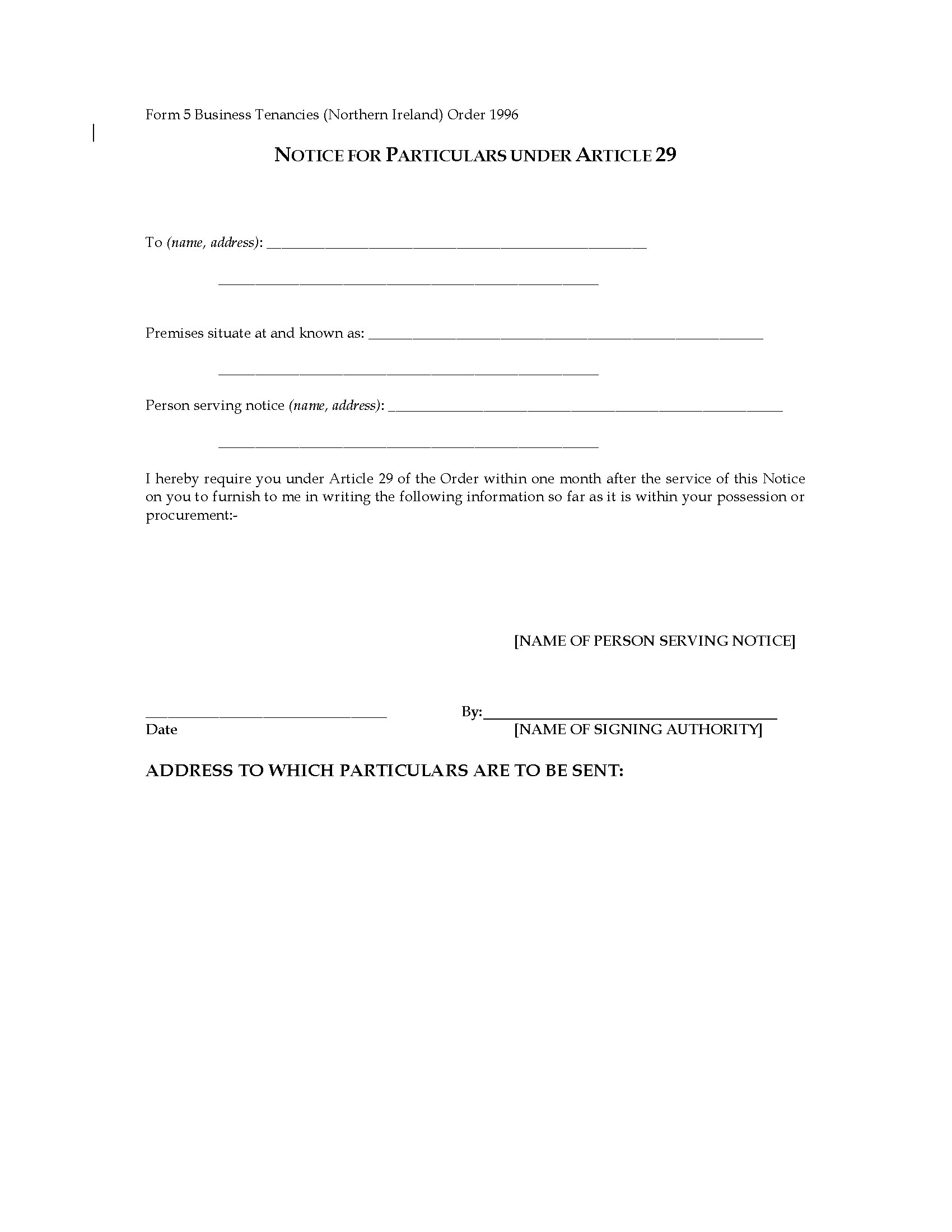 - This termination form is for a tenancy under the Business Tenancies (Northern Ireland) Order which has ceased to be a tenancy to which the Order Applies.