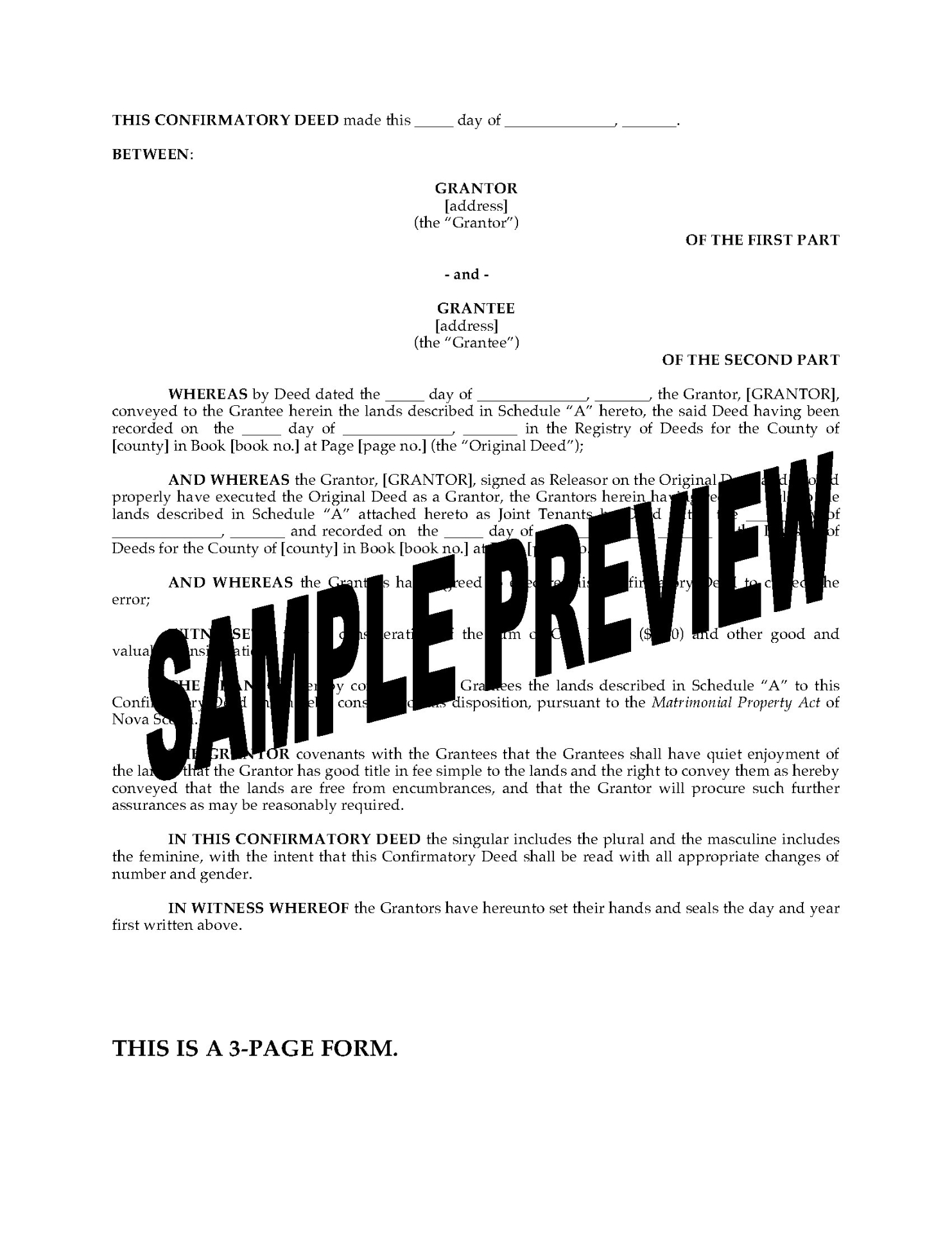 Nova Scotia Deed Transfer - Affidavit of Value