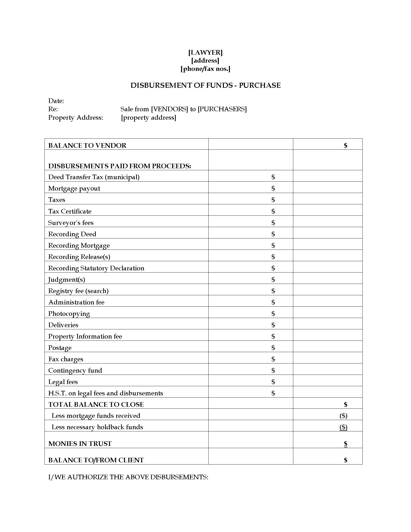 - pay out any outstanding mortgage amounts owing on the property that are not being assumed by the purchaser,