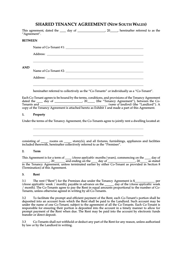 - This Rooming House Agreement is intended to be used only in New South Wales.