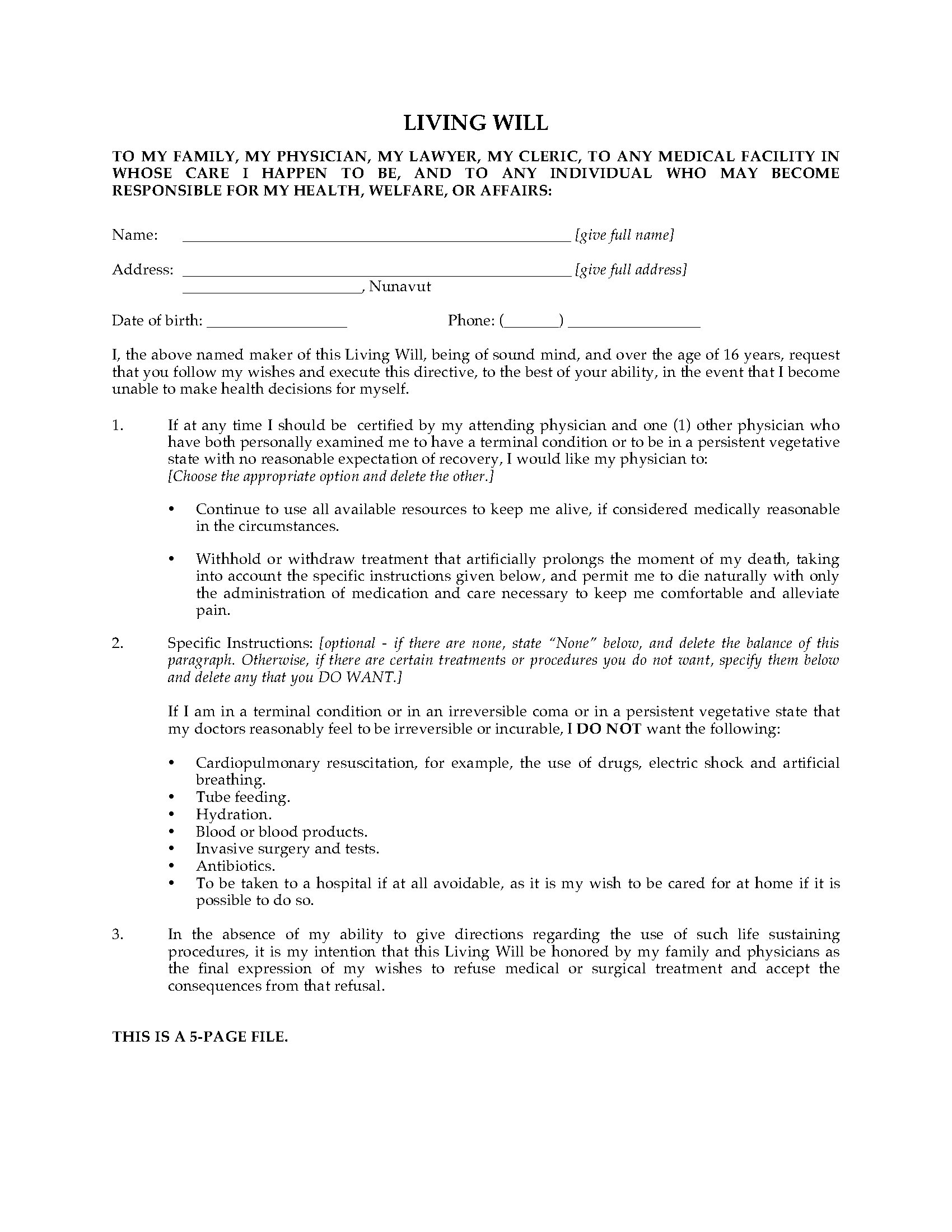 Nunavut Estate Planning Package