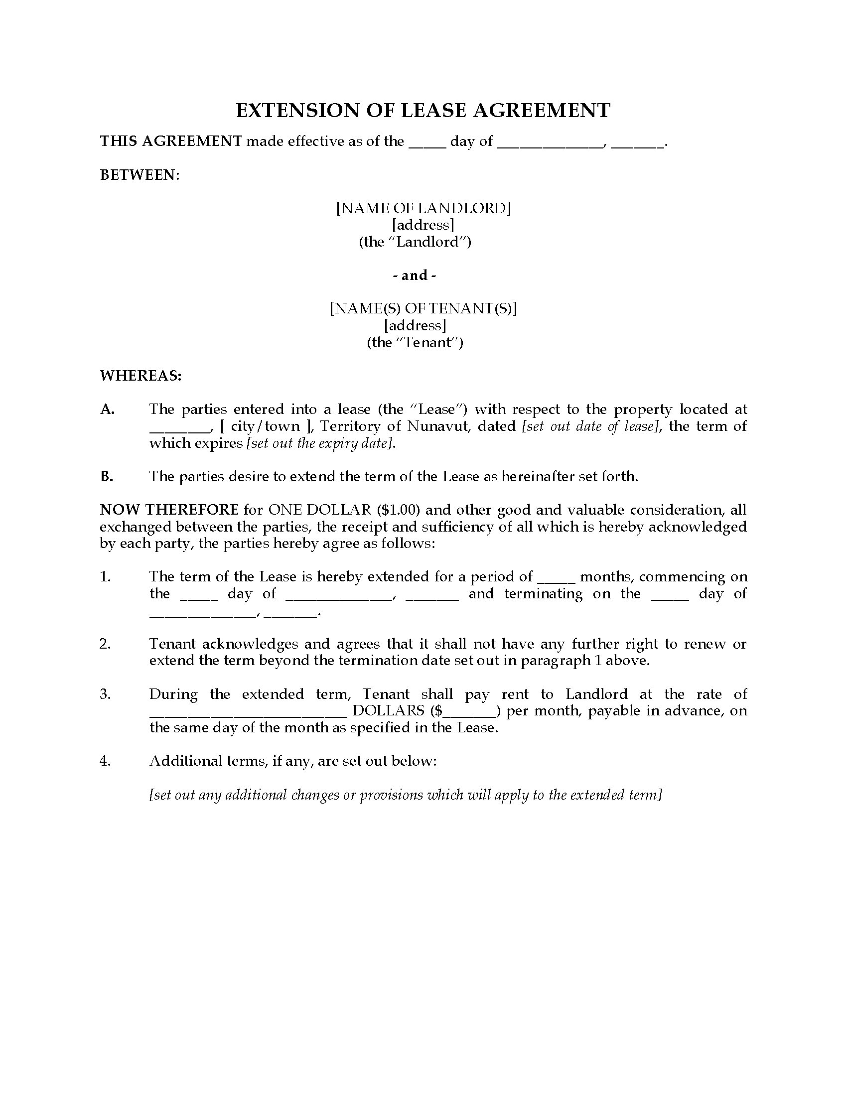 Nunavut Extension of Residential Lease