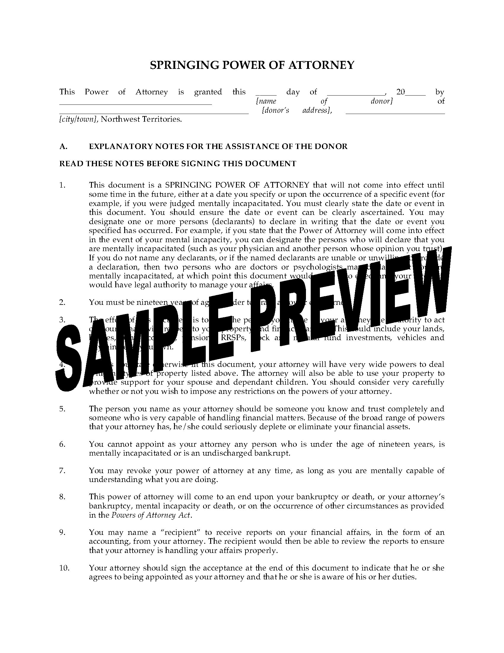 NWT Enduring Power of Attorney