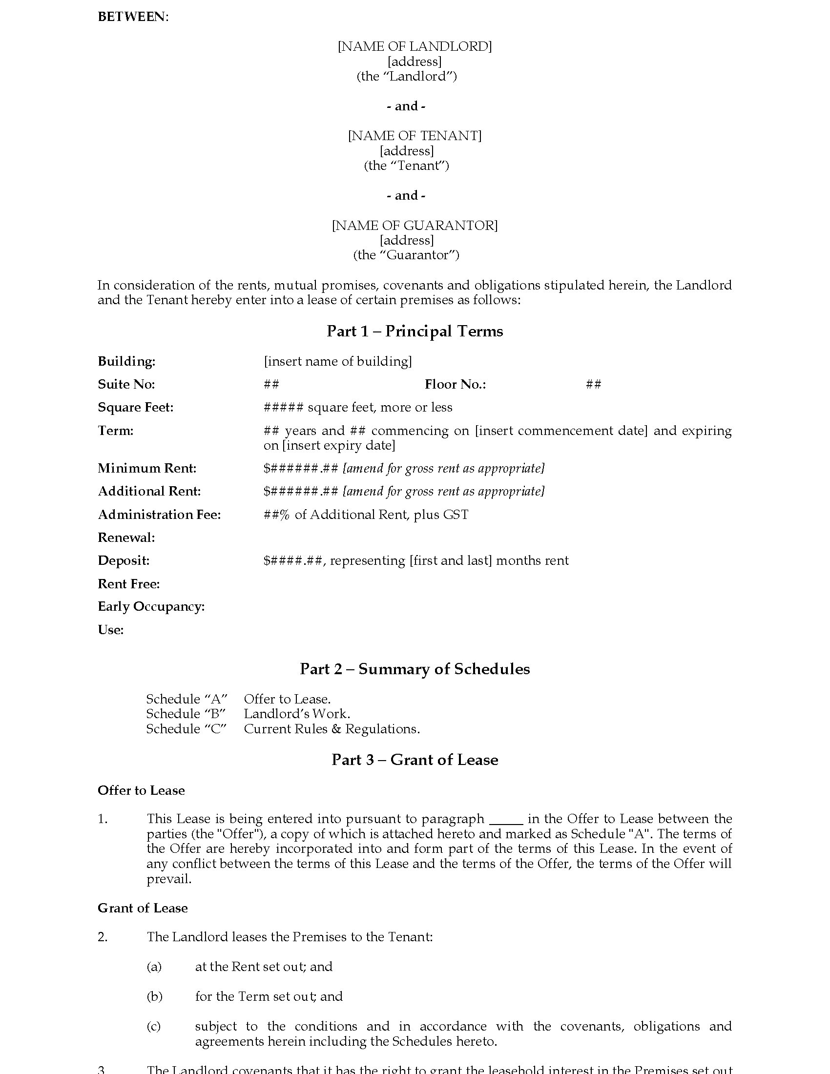 Ontario Standard Form Commercial Lease