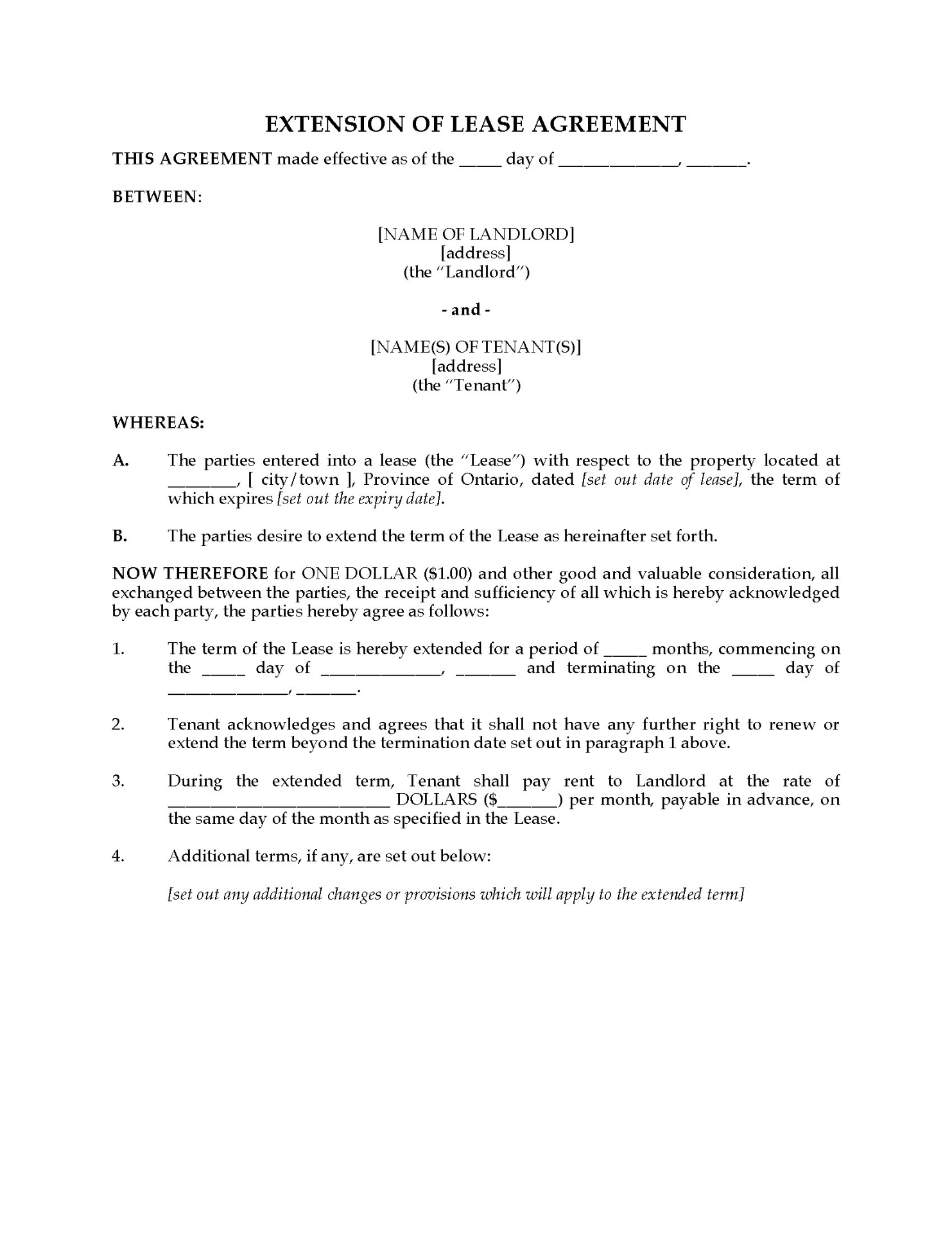 Ontario Commercial Lease Renewal and Extension Agreement