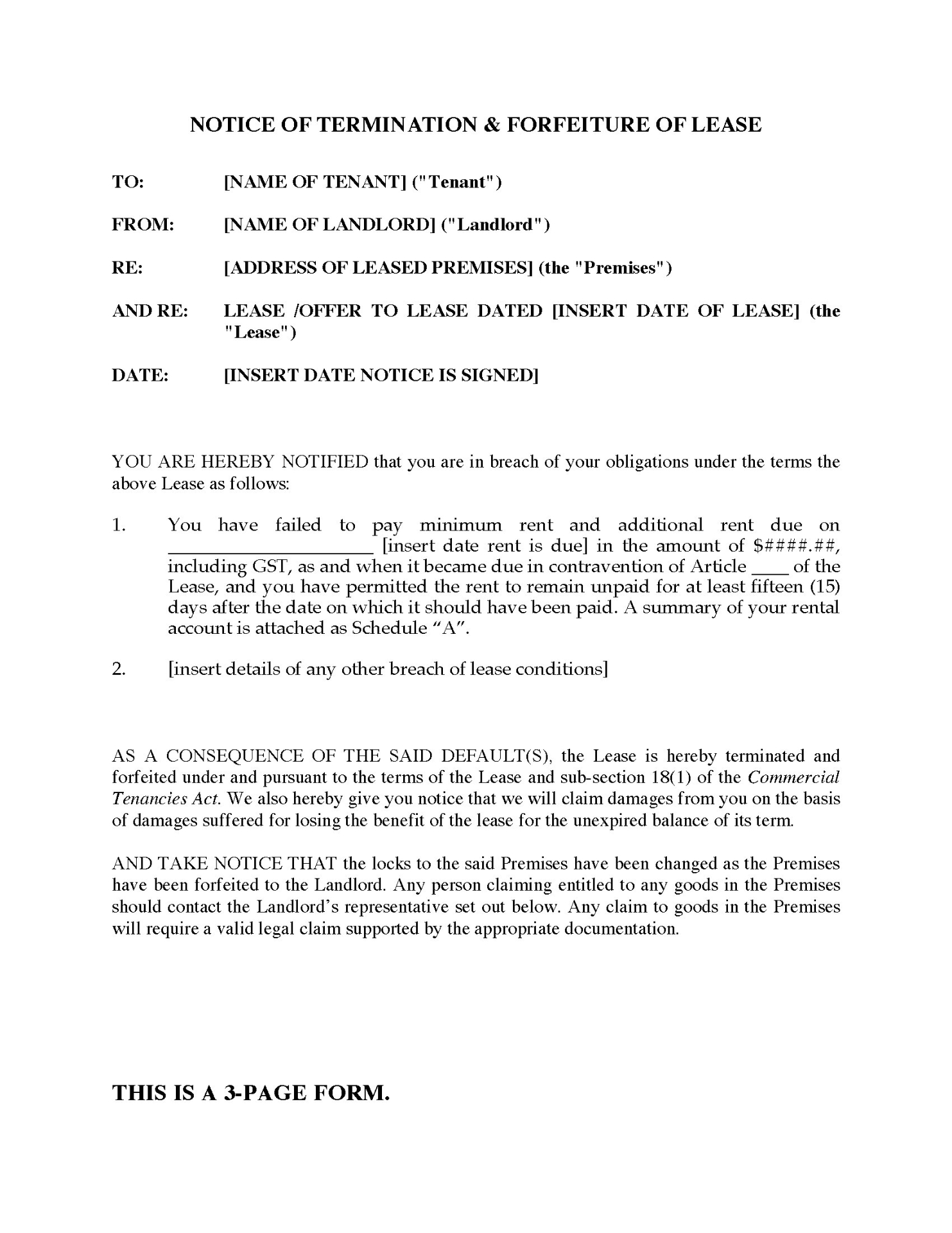 - This agreement is only for commercial tenancies. You will need to use a different form for residential tenants.