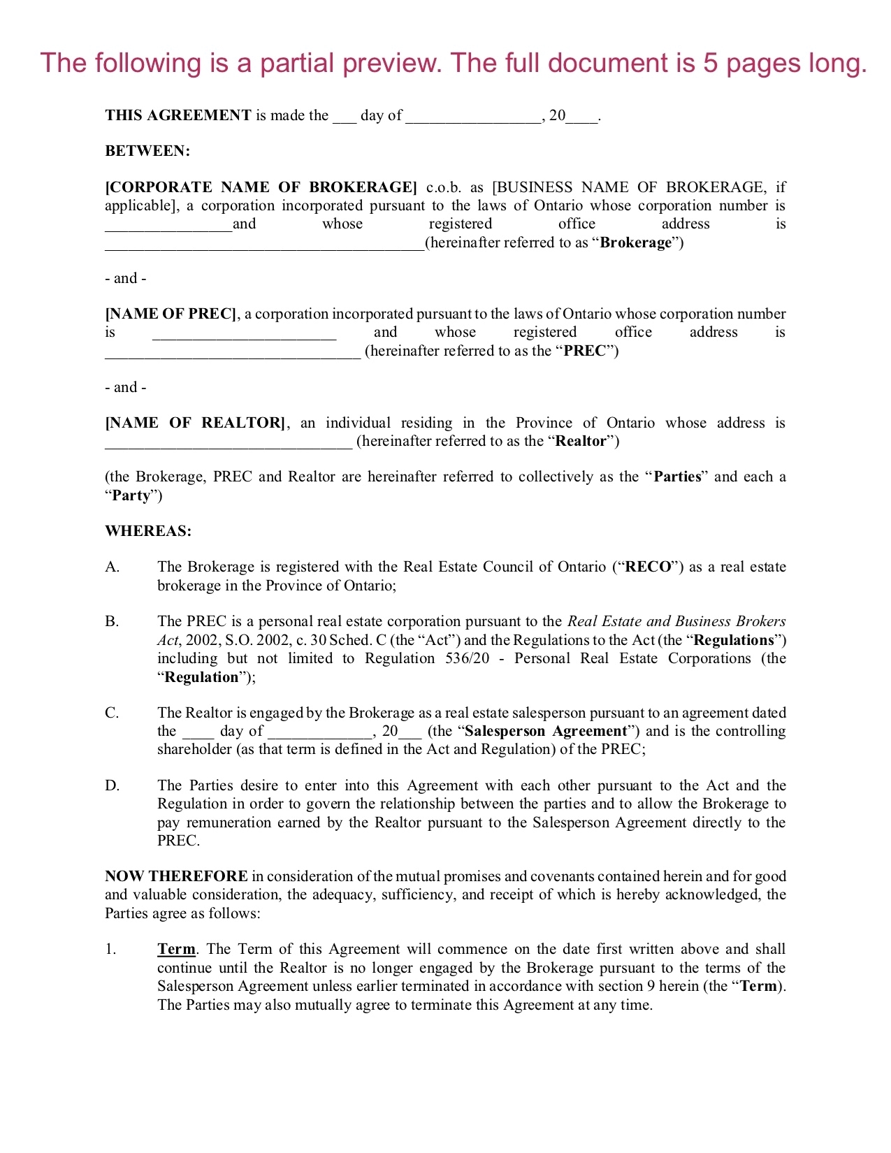 - This is not the OREA standard form of contract. OREA forms must be obtained from a member of the Ontario Real Estate Association.