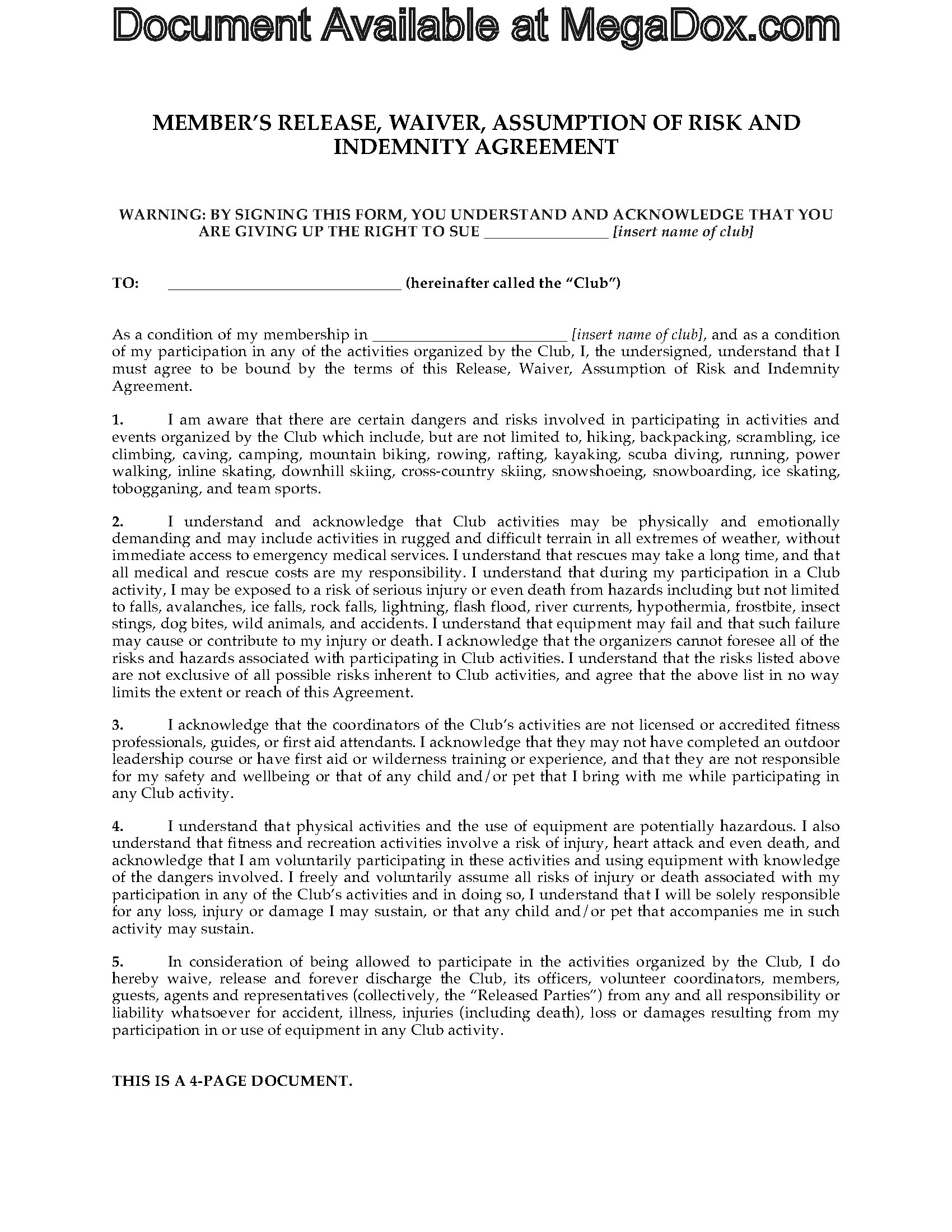 If your company operates fitness programs in Canada, protect your business from injury and damages claims with this Waiver and Release form