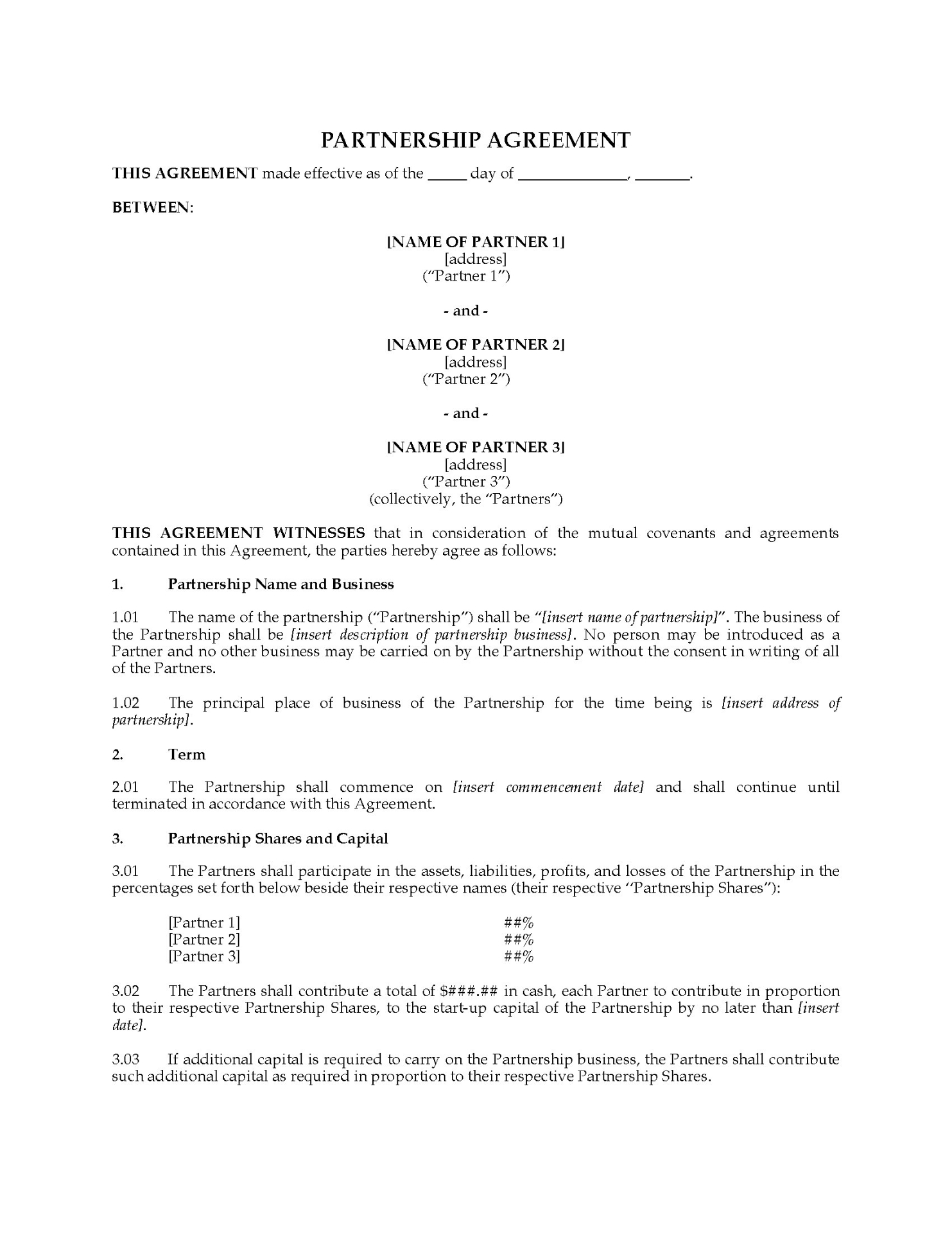 - The partners agree to resolve any disputes through arbitration.