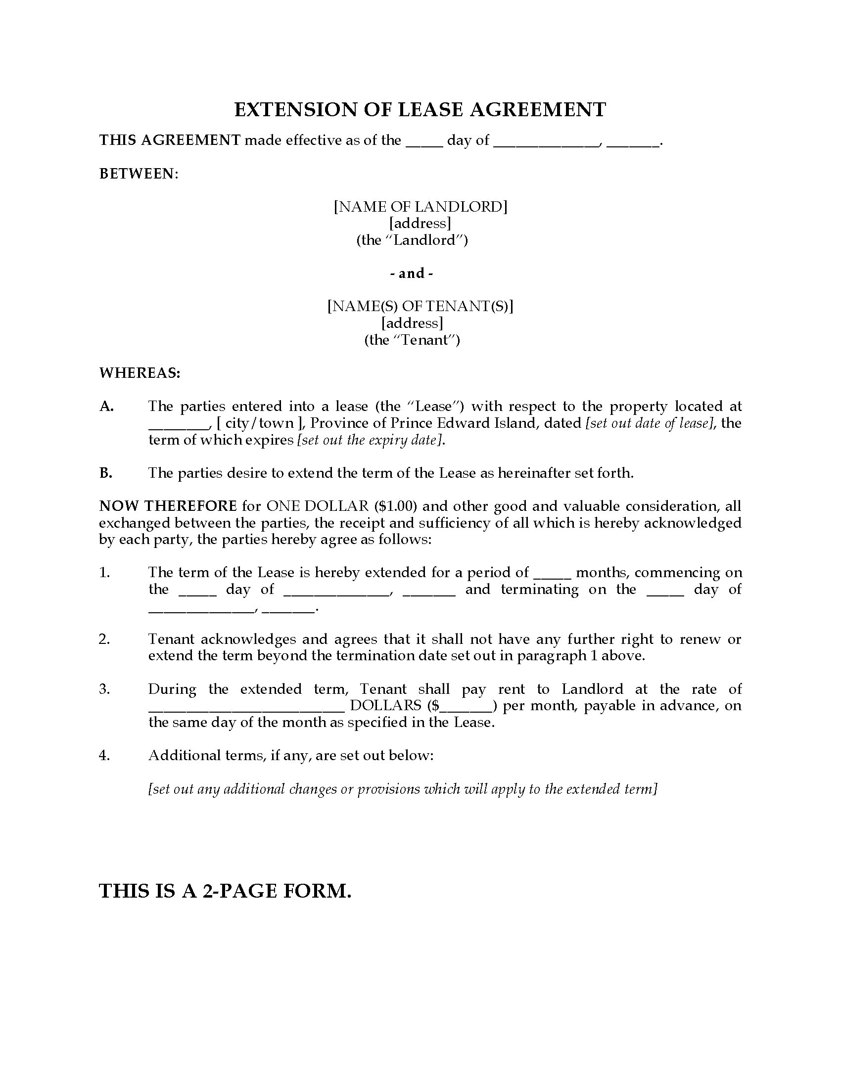 PEI Extension of Residential Lease