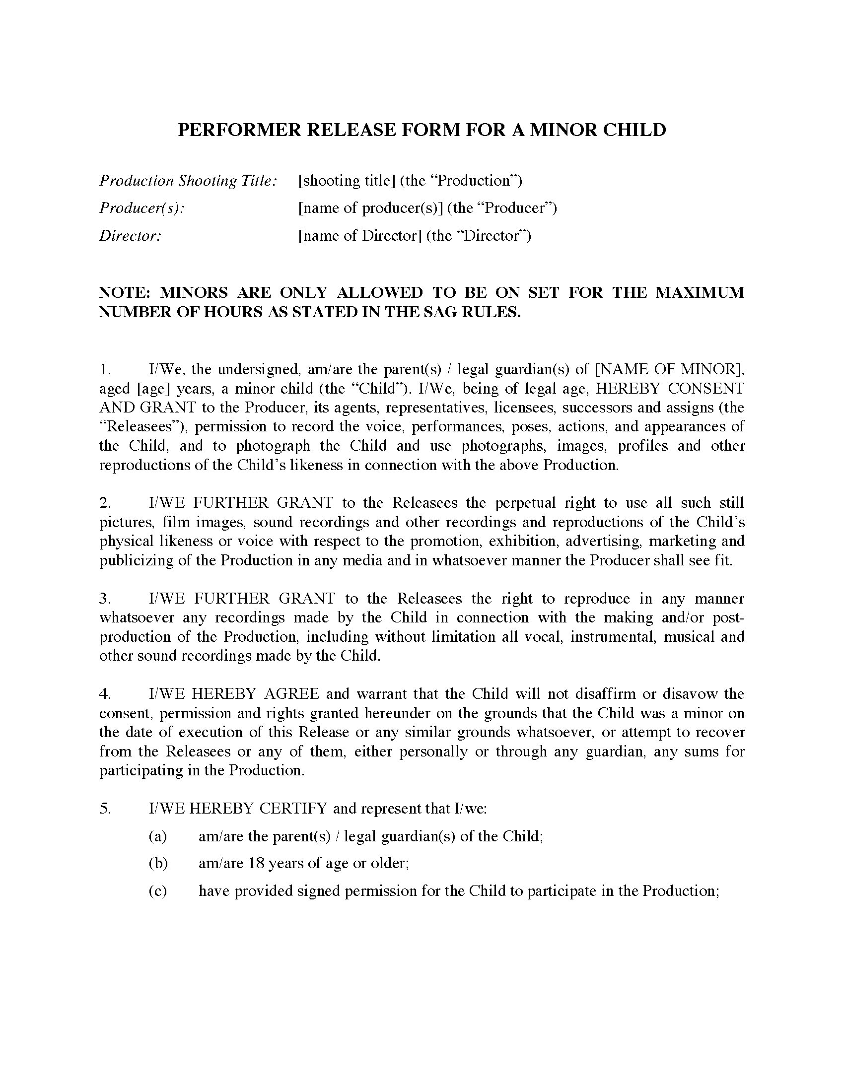 - The release grants the producers the perpetual right to use the performer's image, likeness or voice recordings in connection with the film.