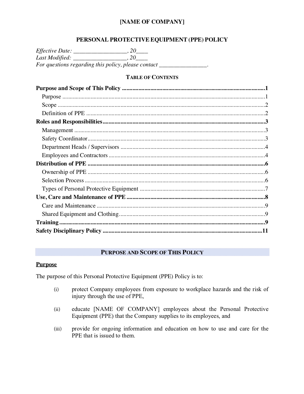 - The Policy must be followed by all employees, contractors and visitors to the company's premises and all who use company equipment or vehicles.