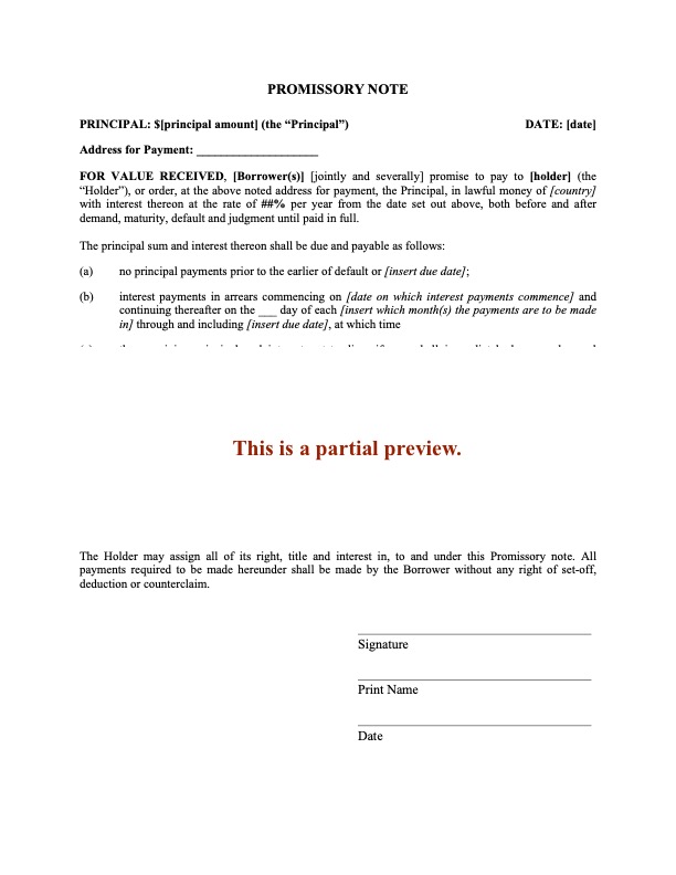 Promissory Note for Interest Only | USA