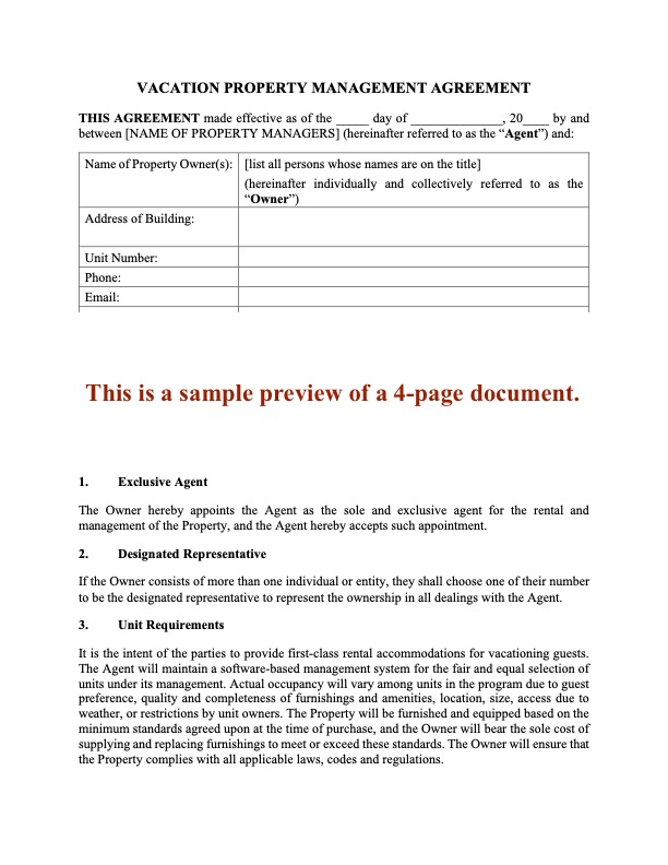 - If you own strata units as investment property, you don't want to spend all your time managing them. Download the Property Management Agreement and hire a professional to do it.