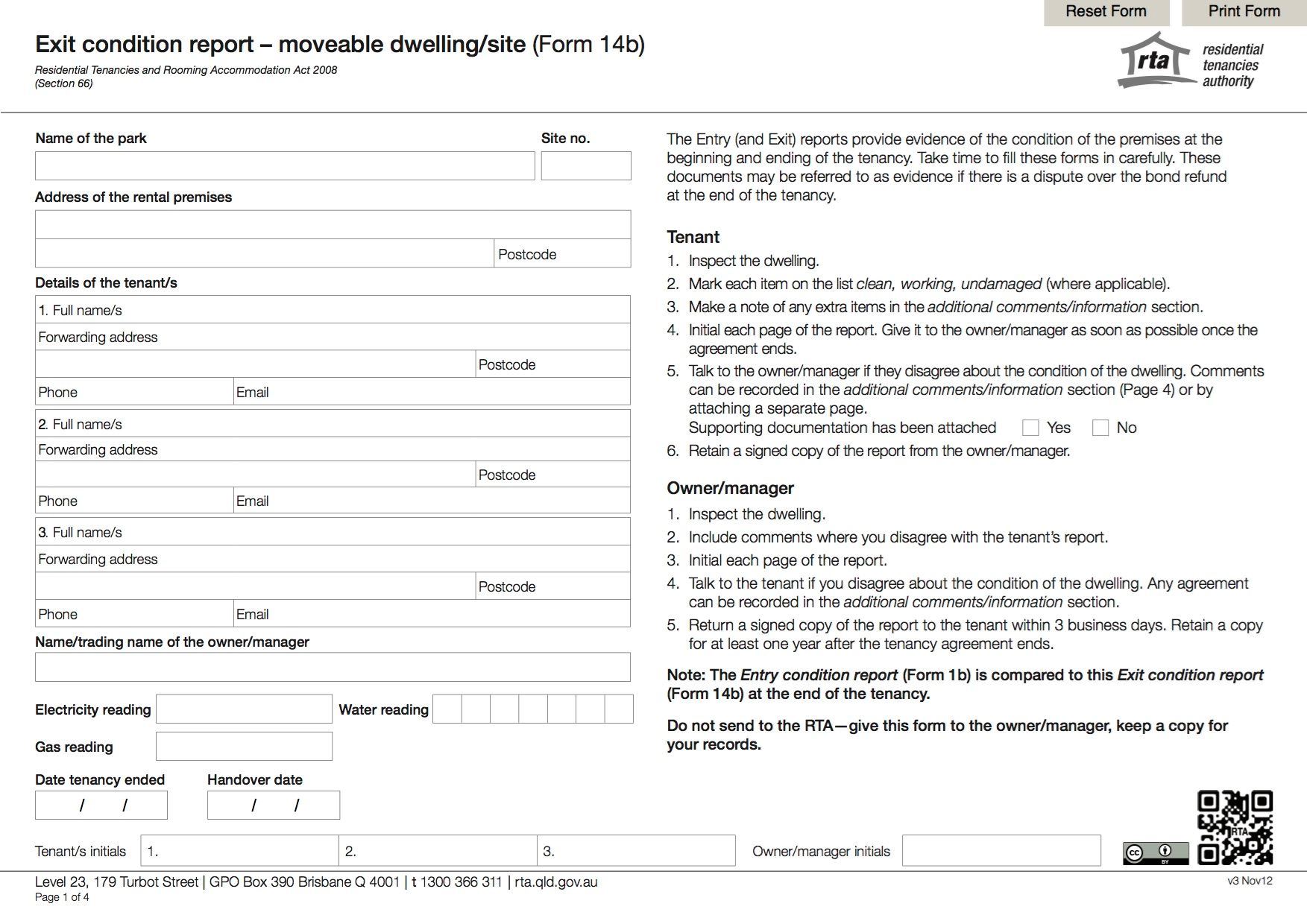- Download the free PDF form directly from the Queensland Residential Tenancies Authority website by clicking the link.